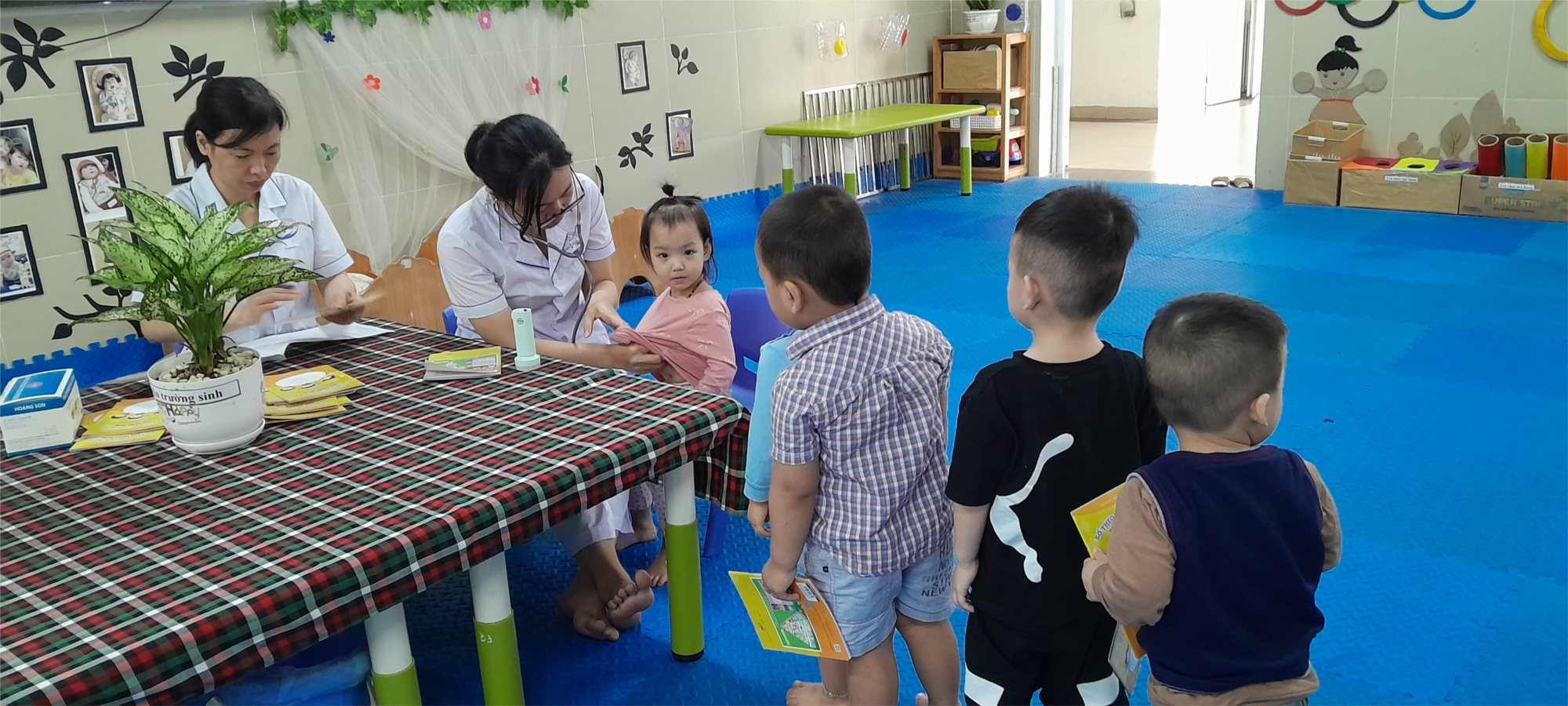 Dưới đây là một số hình ảnh của các bé trong buổi khám sức khỏe: