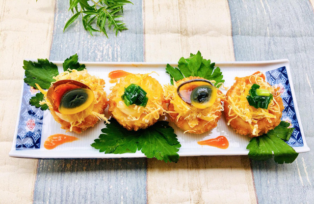 Đậu hũ với lớp vỏ giò !important;n, bên trong béo mềm, ăn kèm trứng bắc thảo lạ miệng, vị mằn mặn của chà bông khiến món ăn trở nên hấp dẫn. Đây sẽ là món khai vị tuyệt vời trong các bữa tiệc.