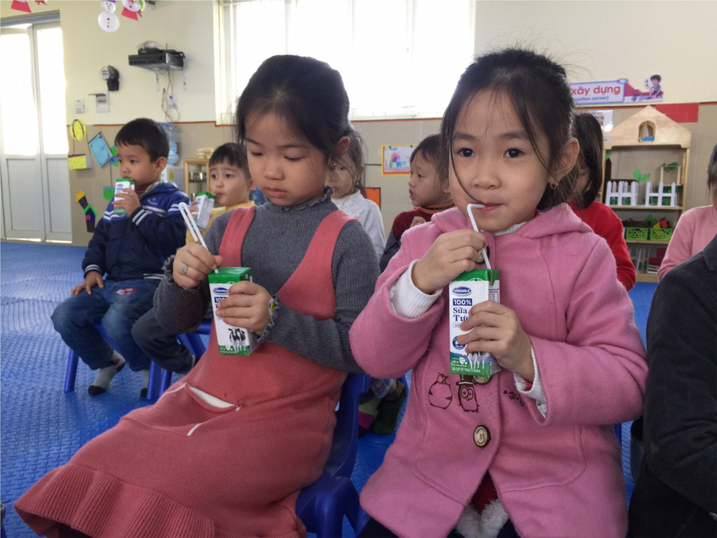 Ngay trong ngày đầu năm mới 2019, cũng là ngày đầu tiên nhà trường thực hiện chương trình sữa học đường . Từ khâu nhận sữa, kiểm tra, bảo quản, chia sữa đến các lớp đều được nhà trường nghiêm túc thực hiện và đảm bảo vệ sinh an toàn thực phẩm. Bé nào cũng háo hức, thích thú khi được nhận sữa. Sau khi uống sữa, các bạn nhỏ còn biết gập vỏ sữa và bỏ vào đúng nơi qui định. Sau đây là 1 số hình ảnh của các bé: