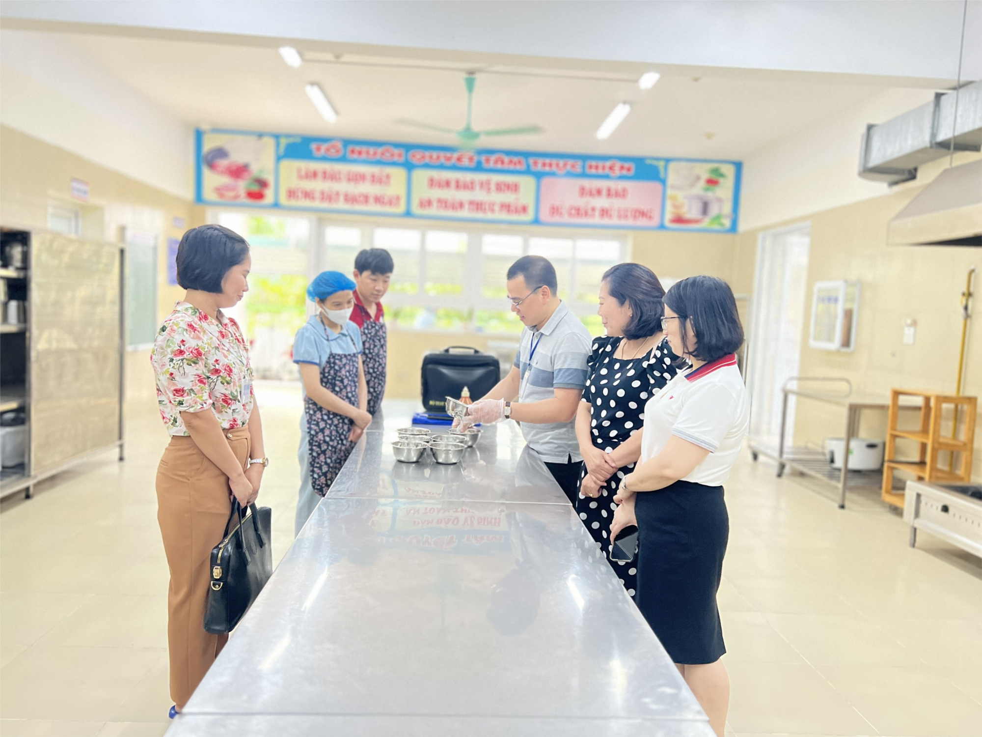 Đoàn kiểm tra đã ghi nhận và đánh giá cao công tác y tế học đường, phòng chống dịch bệnh và an toàn thực phẩm. Nhà trường đã tạo được cảnh quan môi trường sư phạm xanh - sạch - đẹp - an toàn - văn minh. Hồ sơ Y tế trường học có đầy đủ các quyết định, kế hoạch quy định, có sổ theo dõi trẻ ốm, biểu đồ theo dõi, tủ thuốc có đầy đủ các cơ số thuốc theo danh mục thuốc quy định, các loại sổ khám của trẻ ghi chép đầy đủ, thực hiện tốt công tác vệ sinh an toàn thực phẩm. 100% cán bộ, giáo viên, nhân viên được khám sức khỏe định kỳ, có đủ điều kiện, đảm bảo sức khỏe tốt để làm việc. Đoàn đã đánh giá cao các hoạt động trong công tác y tế học đường, an toàn thực phẩm, phòng chống dịch bệnh và các dịch bệnh theo mùa như dịch sốt xuất huyết, dịch tay chân miệng...của nhà trường.