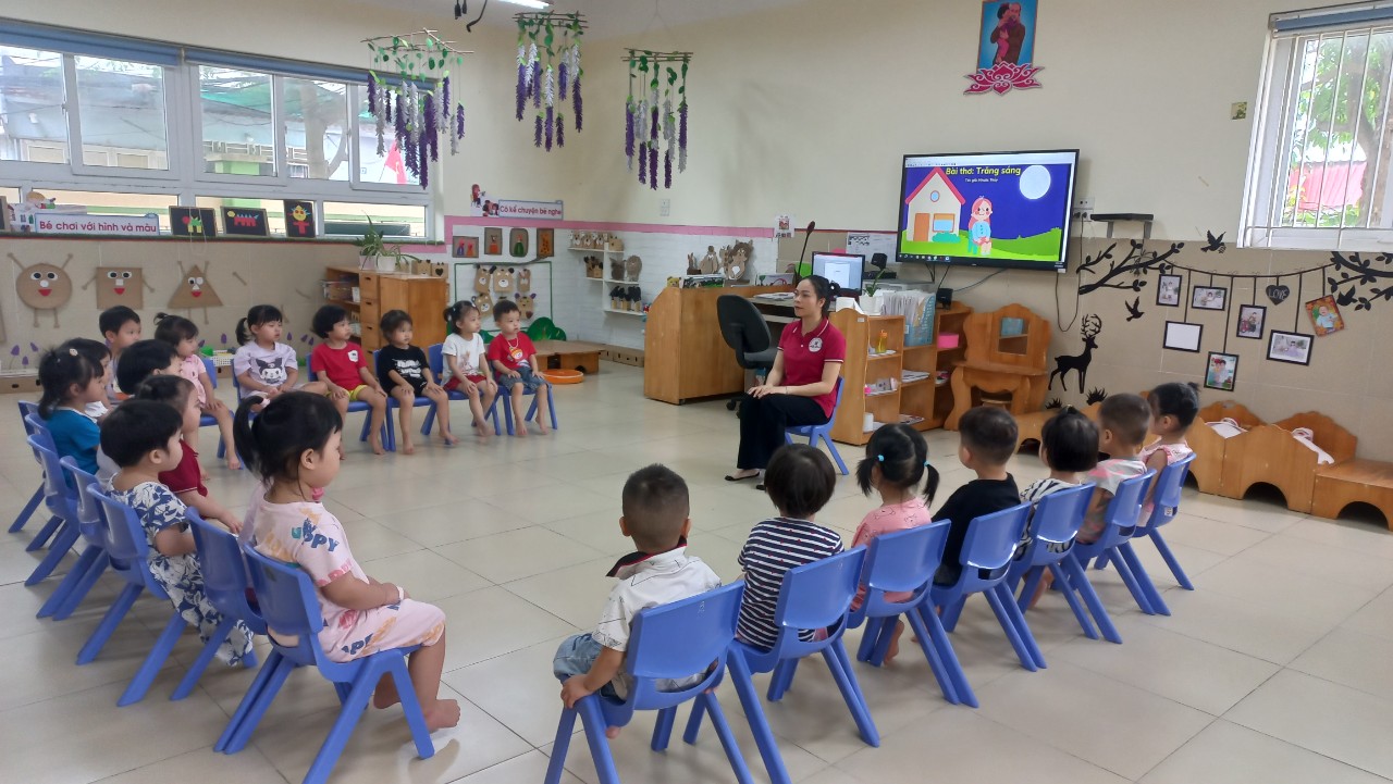 Sau đây là 1 số hình ảnh của trẻ lớp nhà trẻ D1 qua giờ học thơ: "Trăng sáng".