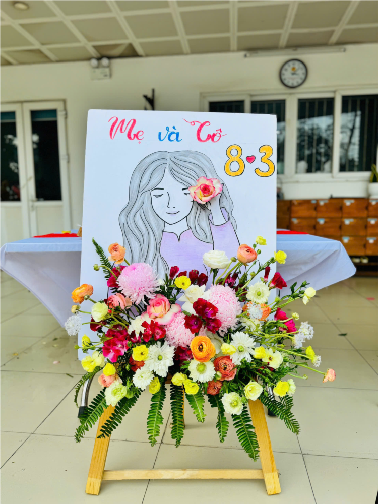 Dưới đôi bàn tay tài hoa và sự phối hợp nhịp nhàng, các cô giáo và phụ huynh đã khéo léo tạo nên những tác phẩm nghệ thuật đầy màu sắc và ý nghĩa. Mỗi lẵng hoa không chỉ mang vẻ đẹp tươi tắn, hài hòa mà còn gửi gắm những thông điệp yêu thương, tôn vinh những người phụ nữ – những người mẹ, người cô luôn hết lòng vì gia đình và sự nghiệp giáo dục.