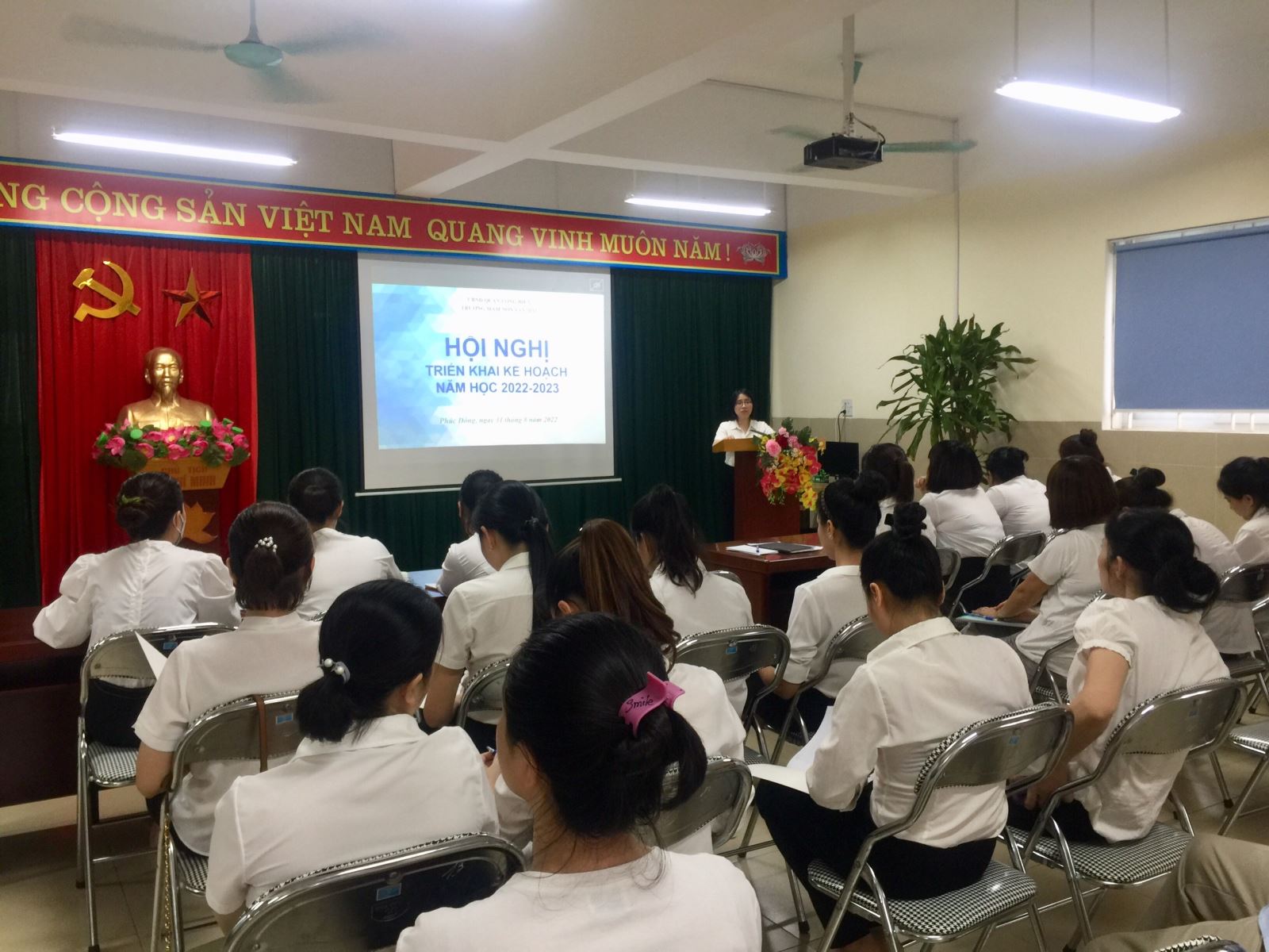 Tại Hội nghị, đồng chí Nguyễn Bích Ngọc – Bí thư chi bộ- Hiệu trưởng nhà trường đã hướng dẫn QCCM và triển khai nhiệm vụ trọng tâm năm học 2022- 2023.