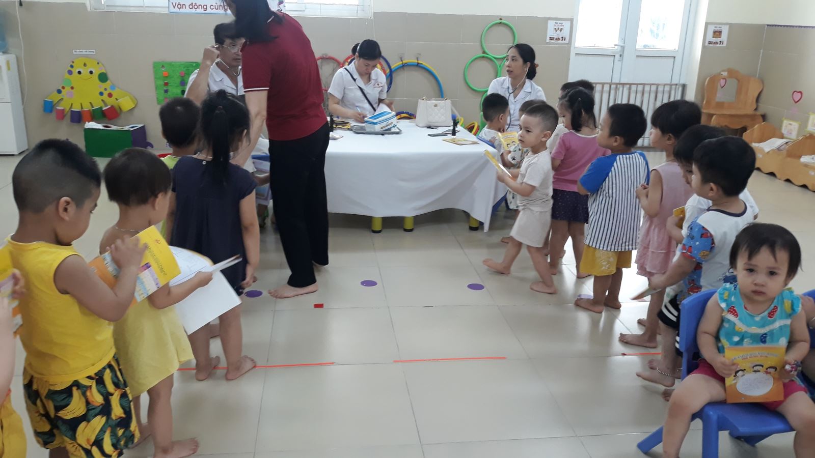 Thứ 6 ngày 05 / 6 /2020, trường mầm non Tân Mai kết hợp với TTYT Quận Long Biên và trạm y tế phường Phúc Đồng tổ chức khám sức khỏe định kỳ lần 2 cho trẻ nhà trẻ. 100% trẻ của lớp D1 được khám với tất cả các chuyên khoa. Kết quả kiểm tra sức khỏe của trẻ được các y bác sĩ, cán bộ y tế nhà trường cùng giáo viên phụ trách của lớp ghi chép cụ thể trong sổ theo dõi sức khỏe, qua bảng tuyên truyền tại cửa lớp và thông báo đến phụ huynh để quý phụ huynh có thể theo dõi tình hình sức khỏe của các bé.