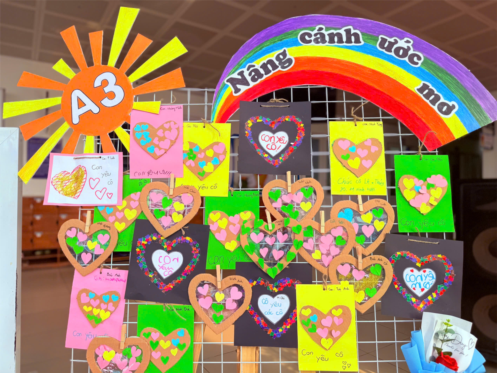 Hoạt động này không chỉ là dịp để các em bày tỏ lòng biết ơn đối với sự dạy dỗ của các cô mà còn giúp các em rèn luyện kỹ năng thủ công, khả năng tư duy sáng tạo, và tinh thần đoàn kết. Các cô giáo đã rất xúc động trước tấm lòng của các em và càng thêm yêu thương, gắn bó với lớp học.