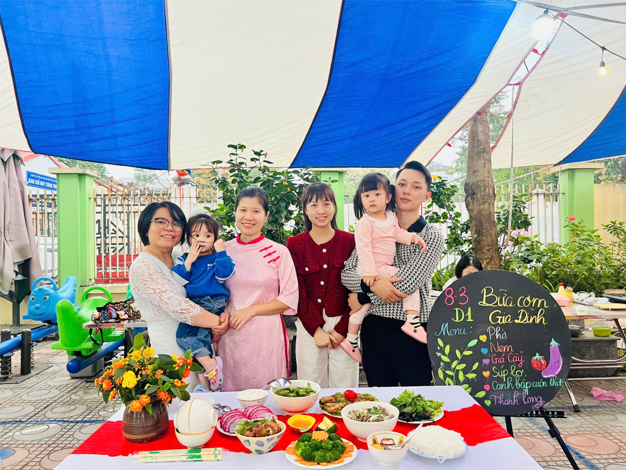 Hưởng ứng hội thi, giáo viên và phụ huynh lớp Nhà trẻ D1 đã tích cực tham gia với tinh thần hào hứng và đoàn kết. Dưới bàn tay khéo léo của các cô giáo và phụ huynh, một mâm cơm gia đình ấm cúng, giàu dinh dưỡng đã được chuẩn bị chu đáo, thể hiện sự chăm chút và tình cảm dành cho hoạt động chung của nhà trường.