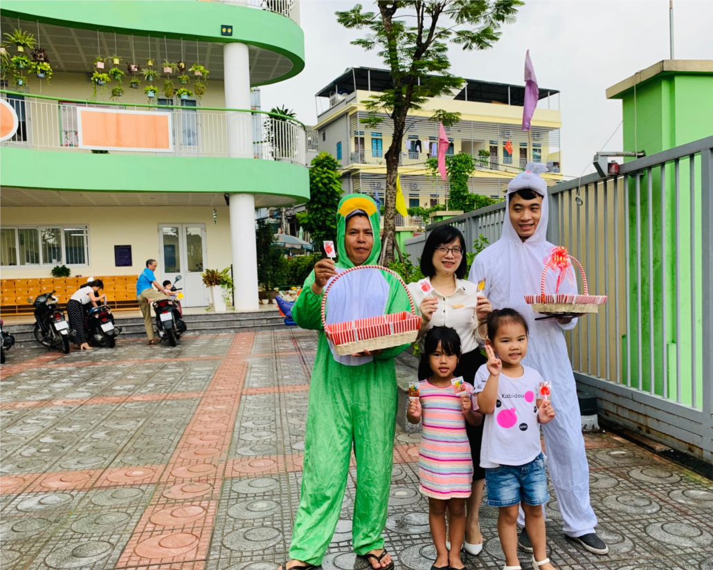 Đối với lứa tuổi mầm non thì tâm lí sợ đến trường sau những ngày nghỉ dài ở nhà chơi với ông bà, anh chị và được đi du lịch cùng bố mẹ. Hiểu được điều đó,các cô giáo và các bác nhân viên trong trường đã hóa thân thành nhân vật ngộ nghĩnh đáng yêu tạo tâm thế thoải mái, vui tươi thích đến trường cho các bé . Cô luôn quan tâm, trò chuyện, hỏi han bé về những hoạt động diễn ra trong lớp, những niềm vui về bạn bè, kích thích niềm vui thích đi học cho các bé bé.