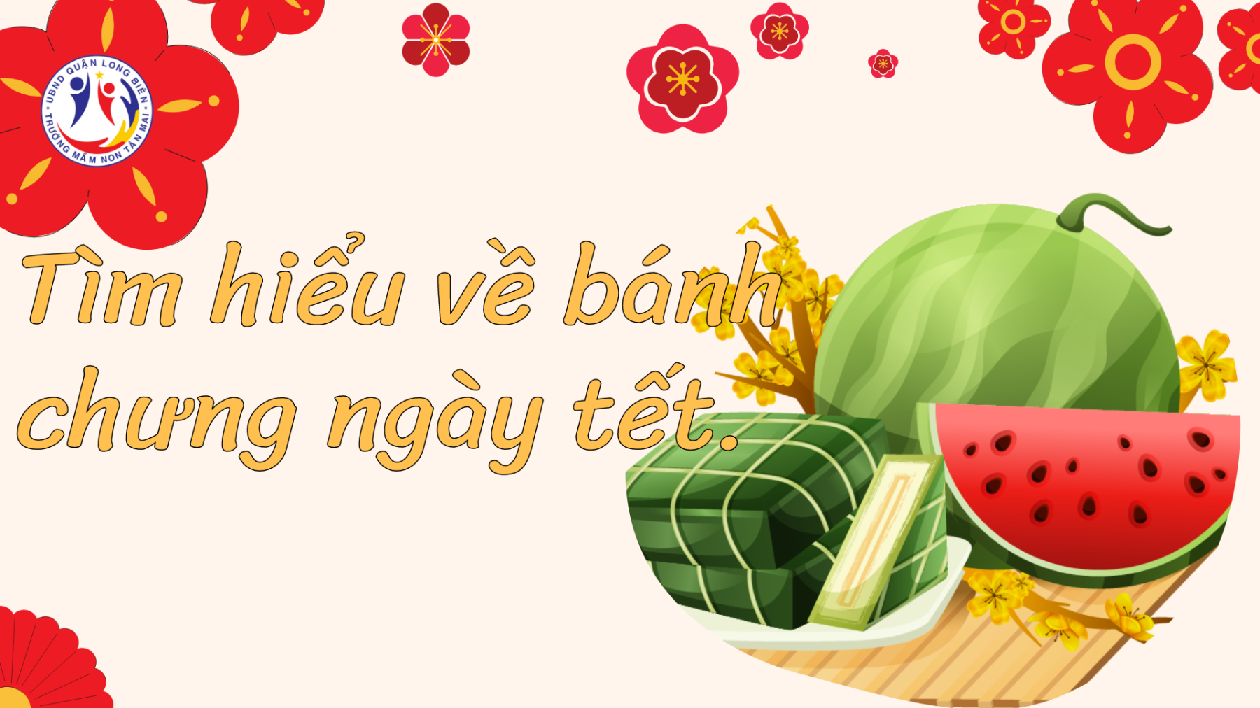 Bánh chưng là một loại bánh truyền thống của dân tộc Việt nhằm thể hiện lòng biết ơn của con cháu đối với cha ông và đất trời xứ sở. Nguyên liệu làm bánh chưng gồm gạo nếp, đậu xanh, thịt lợn, lá dong và bánh thường được làm vào các dịp Tết cổ truyền của dân tộc Việt. Là loại bánh duy nhất có lịch sử lâu đời trong ẩm thực truyền thống Việt Nam còn được sử sách nhắc lại, bánh chưng có vị trí đặc biệt trong tâm thức của cộng đồng người Việt và nguồn gốc của nó có thể truy nguyên về truyền thuyết liên quan đến hoàng tử Lang Liêu vào đời vua Hùng thứ 6. Sự tích trên muốn nhắc nhở con cháu về truyền thống của dân tộc; là lời giải thích ý nghĩa cũng như nguồn cội của của Bánh Chưng, Bánh trong văn hóa, đồng thời nhấn mạnh tầm quan trọng của cây lúa và thiên nhiên trong nền văn hoá lúa nước. Dân tộc nào cũng có thức ăn truyền thống. Song chưa thấy dân tộc nào có một thức ăn vừa độc đáo, vừa ngon lành, vừa bổ, vừa gắn liền với truyền thuyết dân tộc lâu đời, lại vừa có nhiều ý nghĩa sâu xa về vũ trụ, nhân sinh như bánh chưng, bánh giầy của Việt Nam. Bánh chưng hình vuông, màu xanh, tượng trưng trái Đất, âm. Bánh giầy hình tròn, màu trắng, tượng trưng Trời, dương, thể hiện triết lý Âm Dương, Dịch, Biện chứng Đông Phương nói chung và triết lý vuông tròn của Việt Nam nói riêng. Nhằm mục đích cho các học sinh hiểu sâu sắc về ý nghĩa bánh chưng ngày tết và được gói bánh nên hàng năm Trường MN Tân Mai, Quận Long Biên luôn tổ chức cho trẻ hoạt động gói bánh chưng nhưng năm nay là một năm đặt biệt khi dịch bệnh Covid 19 đang trong giai đoạn căng thăng diễn biến phức tạp mà các con không thể đến trường.