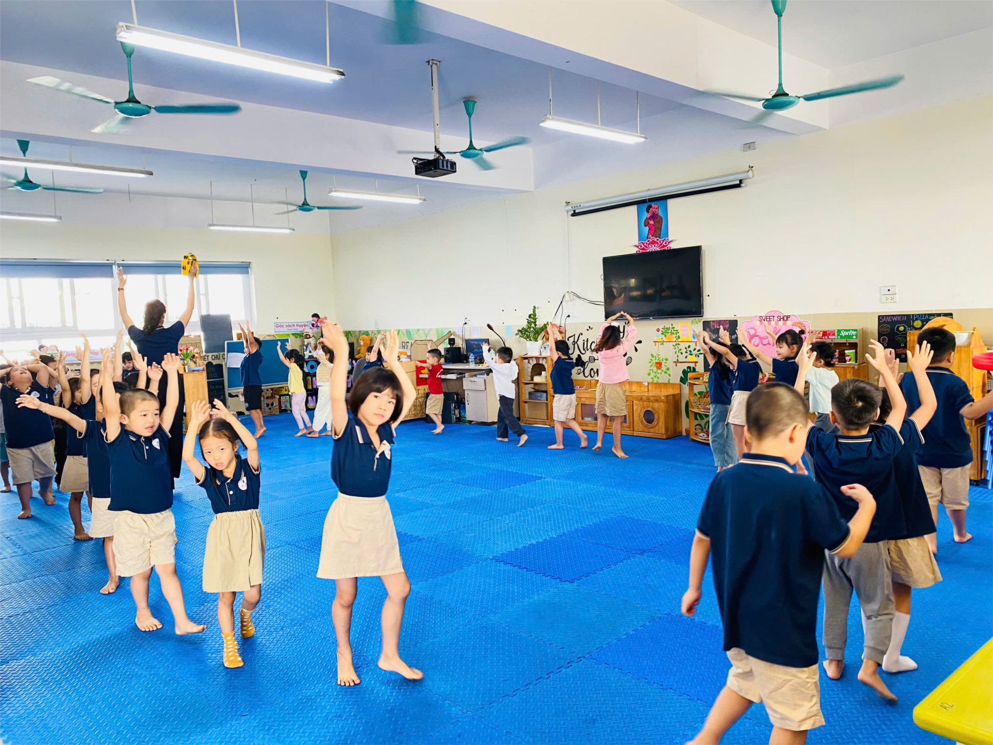 Các bé lớp MGL A2 đã tham gia một buổi hoạt động thể chất vui nhộn và ý nghĩa với hai nội dung chính: bật sâu 50m và trò chơi ném bóng. Đây là một phần trong chương trình giáo dục thể chất nhằm rèn luyện sức khỏe, phát triển thể lực và tạo sự hứng thú trong học tập cho các bé.