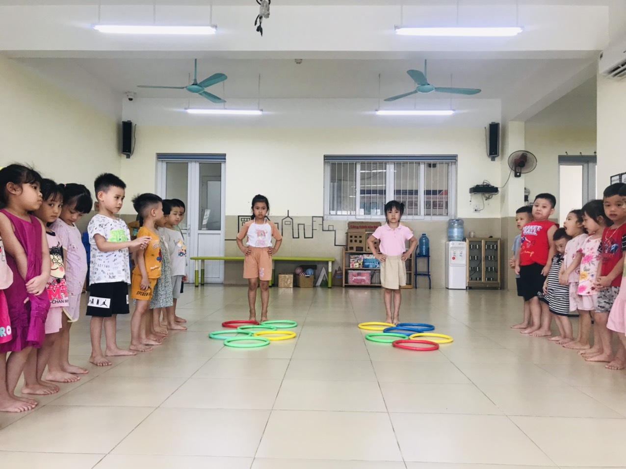 Với mục đích rèn cho các con lớp mẫu giáo nhỡ kỹ năng bật chụm tách chân qua 5 vòng không dẫm vào vòng khi bật, lớp MGN B đã tổ chức một giờ học thể chất bổ ích để qua đó phát triển tổ chất nhanh nhẹn, khéo léo cho các con. Giờ học đã mang đến cho các con kỹ năng bật chụm chân khéo léo qua các vòng đồng thời giúp các con mạnh dạn, tự tin hơn trong hoạt động và phát triển thể chất cho các con, các con lớp MGN B2 được tham gia một tiết học vui vẻ, bạn nào cũng hào hứng thích thú tham gia hoạt động.