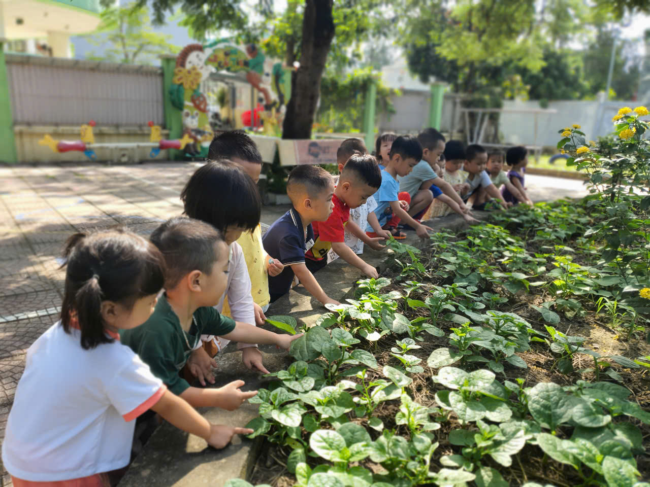 Dưới sự hướng dẫn tận tình của các cô giáo, các bé đã hào hứng tham gia các hoạt động như: chơi các trò chơi dân gian, ném bóng vào rổ, và nhiều trò chơi vận động nhẹ nhàng khác. Những hoạt động này không chỉ giúp các bé rèn luyện sự nhanh nhẹn, phối hợp nhịp nhàng giữa tay và chân mà còn giúp phát triển kỹ năng giao tiếp, tinh thần đồng đội và ý thức kỷ luật trong các trò chơi tập thể.Niềm vui hiện rõ trên từng gương mặt hồn nhiên khi các bé hòa mình vào không gian tự nhiên, được khám phá, vui chơi cùng bạn bè. Những tiếng cười, sự tò mò và hứng khởi của các bé đã tạo nên một bầu không khí sôi động và tràn ngập niềm vui.Kết thúc buổi hoạt động, các bé trở về lớp trong sự phấn khởi và vui tươi, sẵn sàng cho những bài học tiếp theo với tâm trạng tràn đầy năng lượng. Đây là một hoạt động ý nghĩa, giúp các bé không chỉ rèn luyện sức khỏe mà còn học được cách tương tác với môi trường xung quanh và với bạn bè.