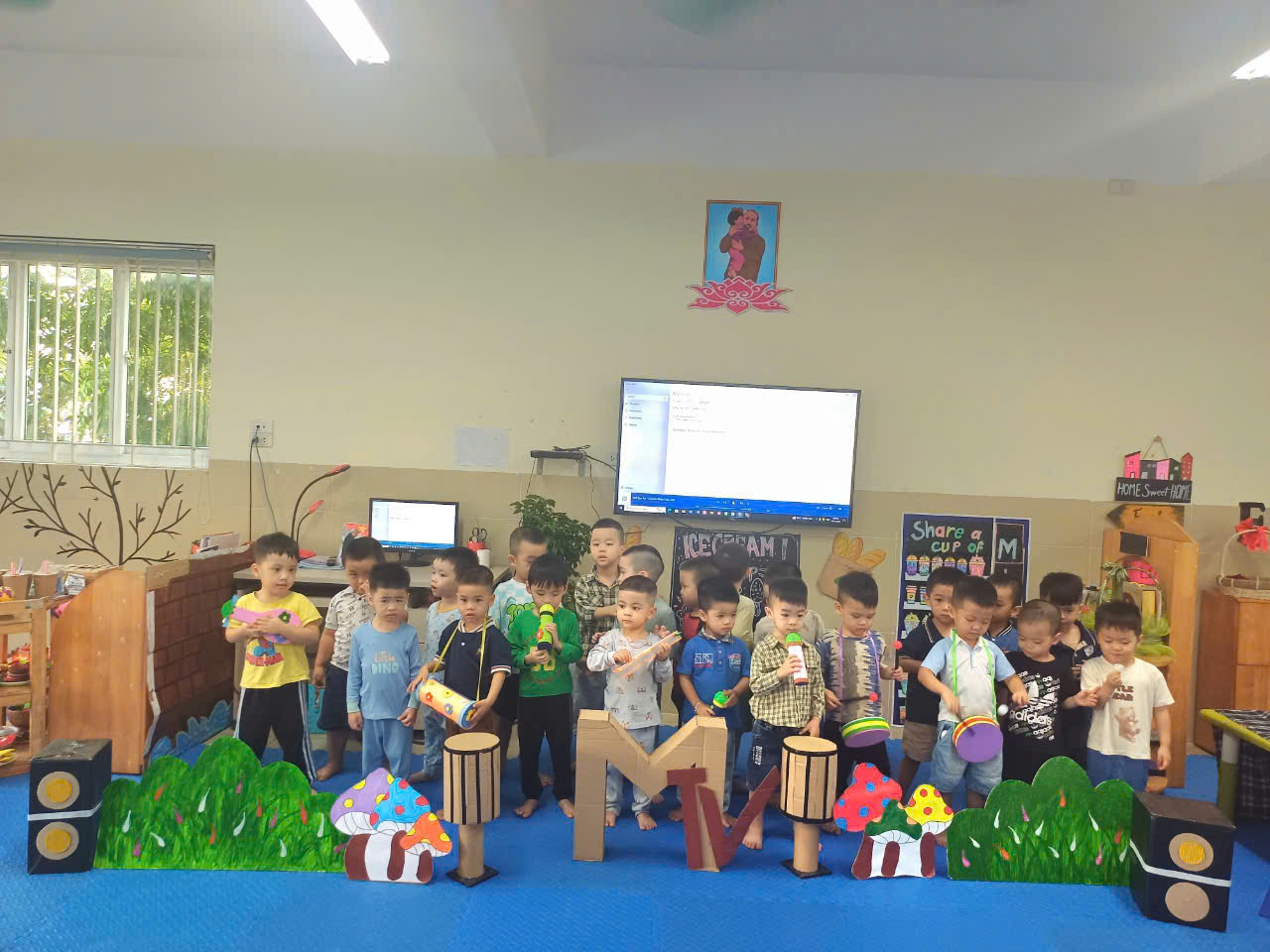 Thực hiện nhiệm vụ chuyên môn hàng ngày. Lớp MGB C2 tổ chức dạy trẻ kỹ năng ca hát bài "Mời bạn ăn" của nhạc sỹ Trần Ngọc. Hoạt động này khiến các bé vô cùng thích thú, vui vẻ và tự tin khi thể hiện bài hát.