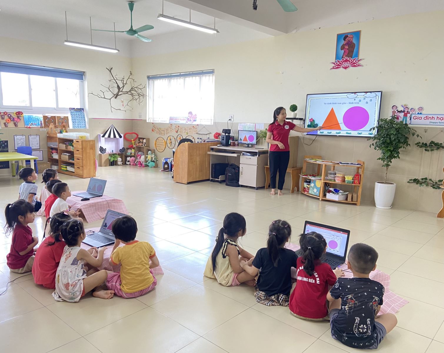 Từ nhỏ chúng ta nên có phương pháp dạy toán cho trẻ mầm non phù hợp. Hiện nay có rất nhiều phương pháp đơn giản giúp, bé vui học toán làm quen với phép tính và những con số, những hình học. Hôm nay, cô và trò lớp MGN B3 học môn làm quen với toán với đề tài “Nhận biết shình tam giác hình tròn".