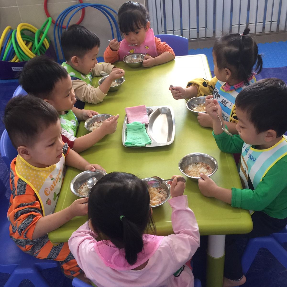 Sau một buổi sáng với biết bao hoạt động bổ ích như thể dục sáng, hoạt động chơi tập, hoạt động ngoài trời thì dường như bé nào cũng đã đói bụng vì sắp tới giờ ăn và nghỉ ngơi. Một chế độ dinh dưỡng tốt ngay từ thời thơ ấu sẽ là nền tảng cho sự phát triển cả về thể chất lẫn tinh thần mà chỉ có khi trưởng thành mới có thể biết được. Bên cạnh chế độ dinh dưỡng trong bữa ăn, việc vệ sinh trước, trong và sau khi ăn cũng có phần rất quan trọng trong việc hình thành thói quen cho trẻ, giúp trẻ phát triển toàn diện về nhân cách sau này.