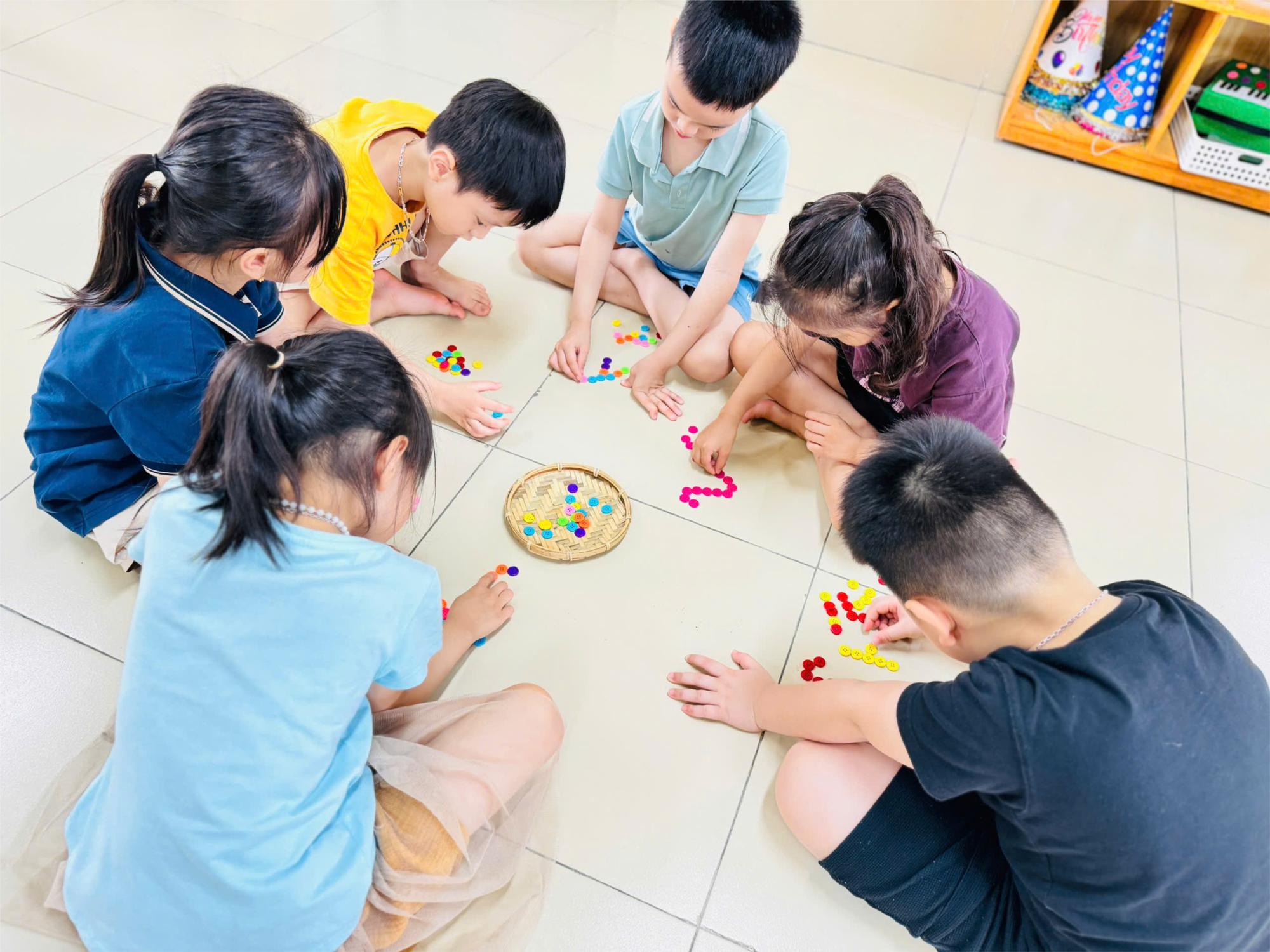 Thông qua các trò chơi: Quân xúc xắc vui vẻ, truyền tin, tạo hình chữ cái s, x với các loại hột hạt, các bạn nhỏ lớp MGL A1 được luyện phát âm rõ ràng, phân biệt âm đầu sờ – xờ, đồng thời mở rộng vốn từ và rèn luyện kỹ năng quan sát.