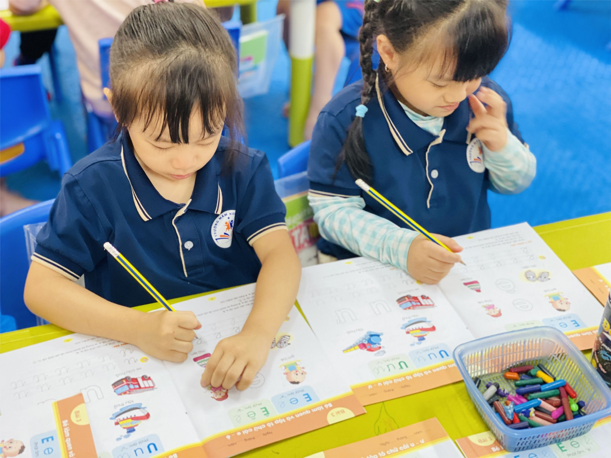 Hoạt động tập tô chữ "e" và "ê" không chỉ giúp các bé phát triển khả năng viết mà còn kích thích sự sáng tạo và khơi dậy niềm yêu thích học tập ngay từ những bước đầu tiên.