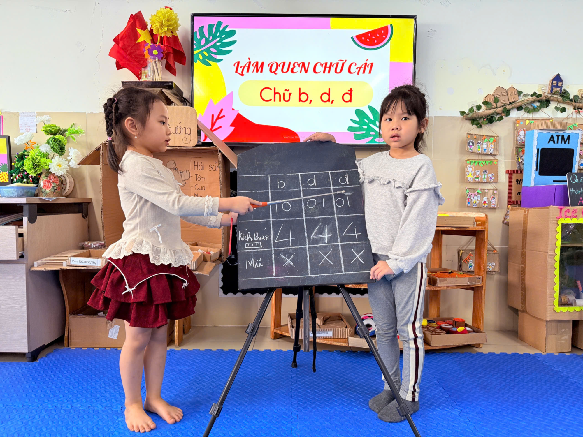 Trong giờ học, cô giáo đã linh hoạt sử dụng nhiều hình thức tổ chức như trò chơi, hình ảnh trực quan sinh động nhằm giúp trẻ nhận biết, phân biệt và phát âm đúng các chữ cái b, d, đ. Trẻ được tham gia các hoạt động học mà chơi, chơi mà học, mạnh dạn trả lời câu hỏi, tích cực tương tác cùng cô và các bạn.