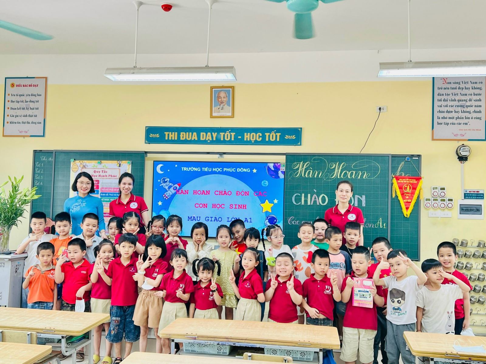 Đến trường Tiểu học Phúc Đồng, các bé được dự hoạt động "Chào cờ", giao lưu văn nghệ, trò chuyện với giáo viên dạy lớp 1, được cô giáo giới thiệu về trường tiểu học, về lớp 1, về đồ dùng học tập và các hoạt động học tập ở trường tiểu học khác với ở trường mầm non như thế nào? Qua đó giúp cho trẻ có thêm hiểu biết về trường tiểu học và các hoạt động học tập của học sinh tiểu học. Từ đó, tạo cho trẻ tâm thế để sẵn sàng bước vào lớp 1. Chuyến tham quan giúp trẻ mở rộng vốn hiểu biết về trường Tiểu học, môi trường học tập của học sinh lớp Một.