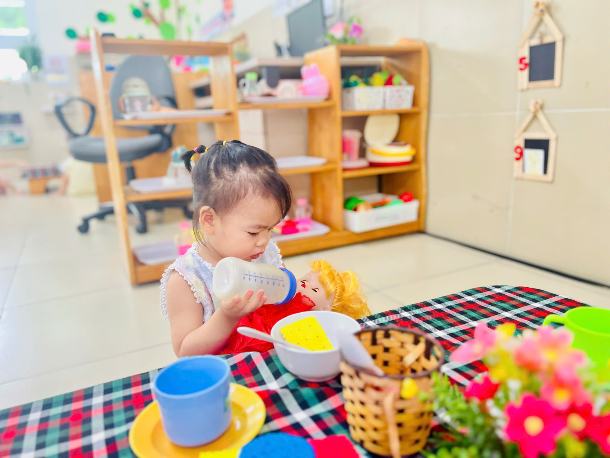 Một số hình ảnh nổi bật trong hoạt động góc của bé lớp Nhà trẻ D2: