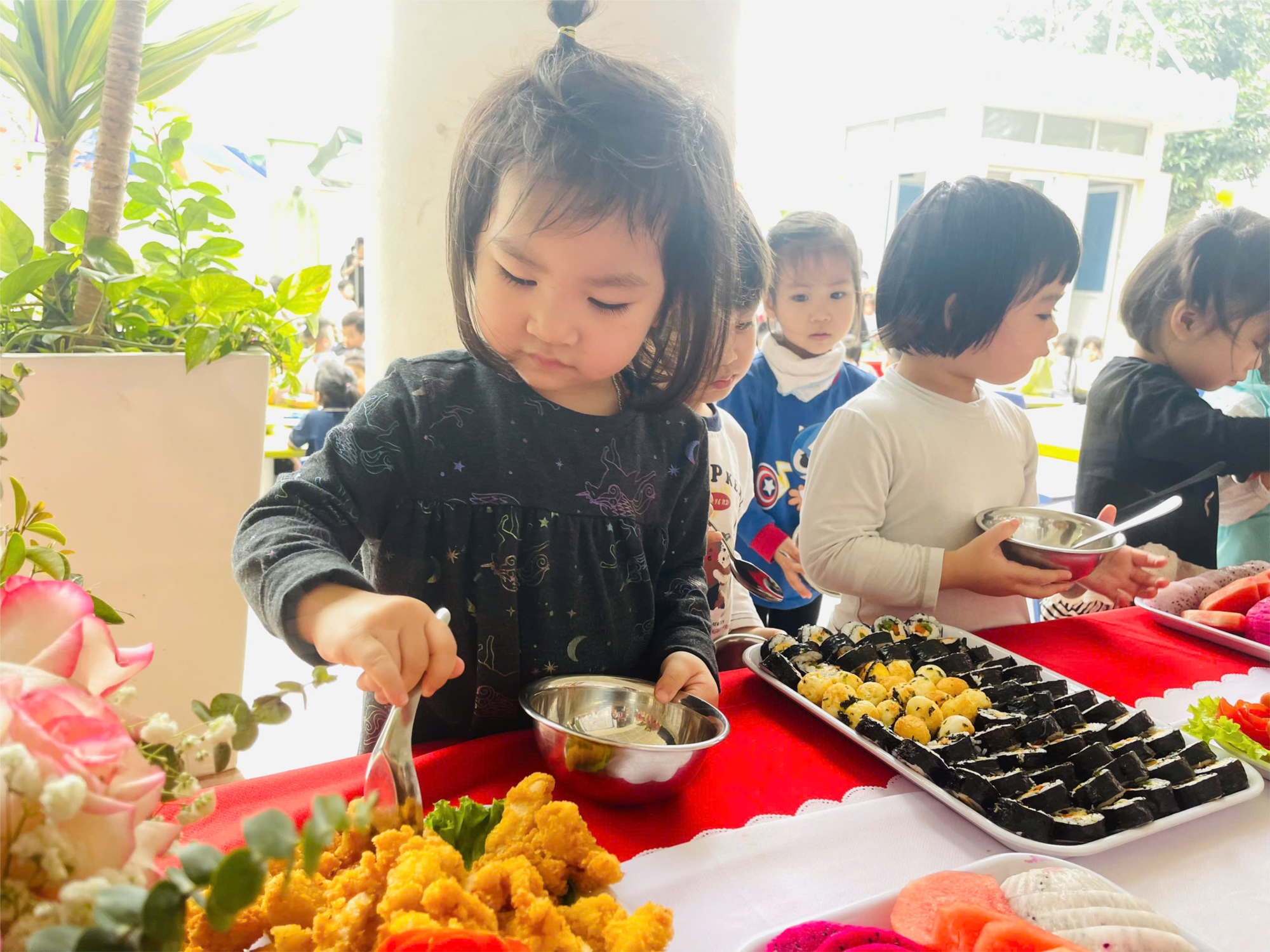 Hoạt động tiệc Buffet được tổ chức cho các bé tại trường là một trong những hoạt động đầy ý nghĩa và giá trị. Đến với bữa tiệc các bé có thể thưởng thức các món Buffet ngon miệng và bổ dưỡng.
