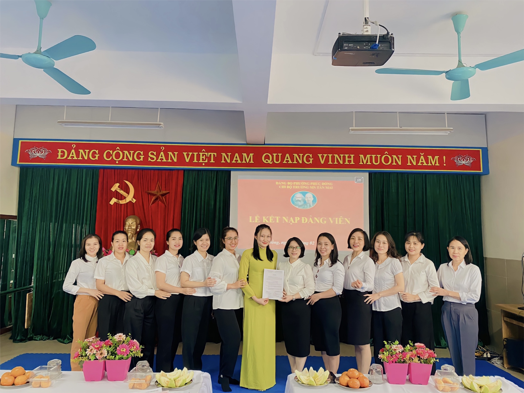 Dự lễ kết nạp có đồng chí Nguyễn Bích Ngọc - Bí thư Chi bộ trường MN Tân Mai và sự có mặt của 100% các đồng chí Đảng viên trong Chi bộ. Lễ kết nạp được diễn ra trong không khí trang nghiêm, đúng trình tự, thủ tục của Điều lệ Đảng.