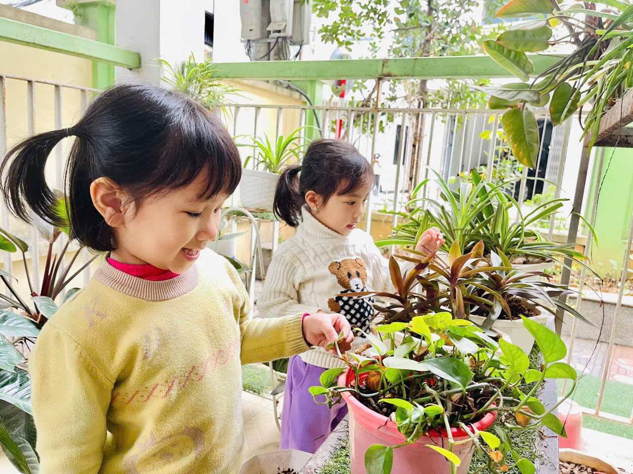 Nhìn những chậu cây xanh tươi được các bé chăm sóc, ai cũng cảm thấy vui lòng. Hy vọng rằng, những hoạt động như vậy sẽ giúp các bé thêm yêu thiên nhiên và có ý thức bảo vệ môi trường ngay từ khi còn nhỏ.