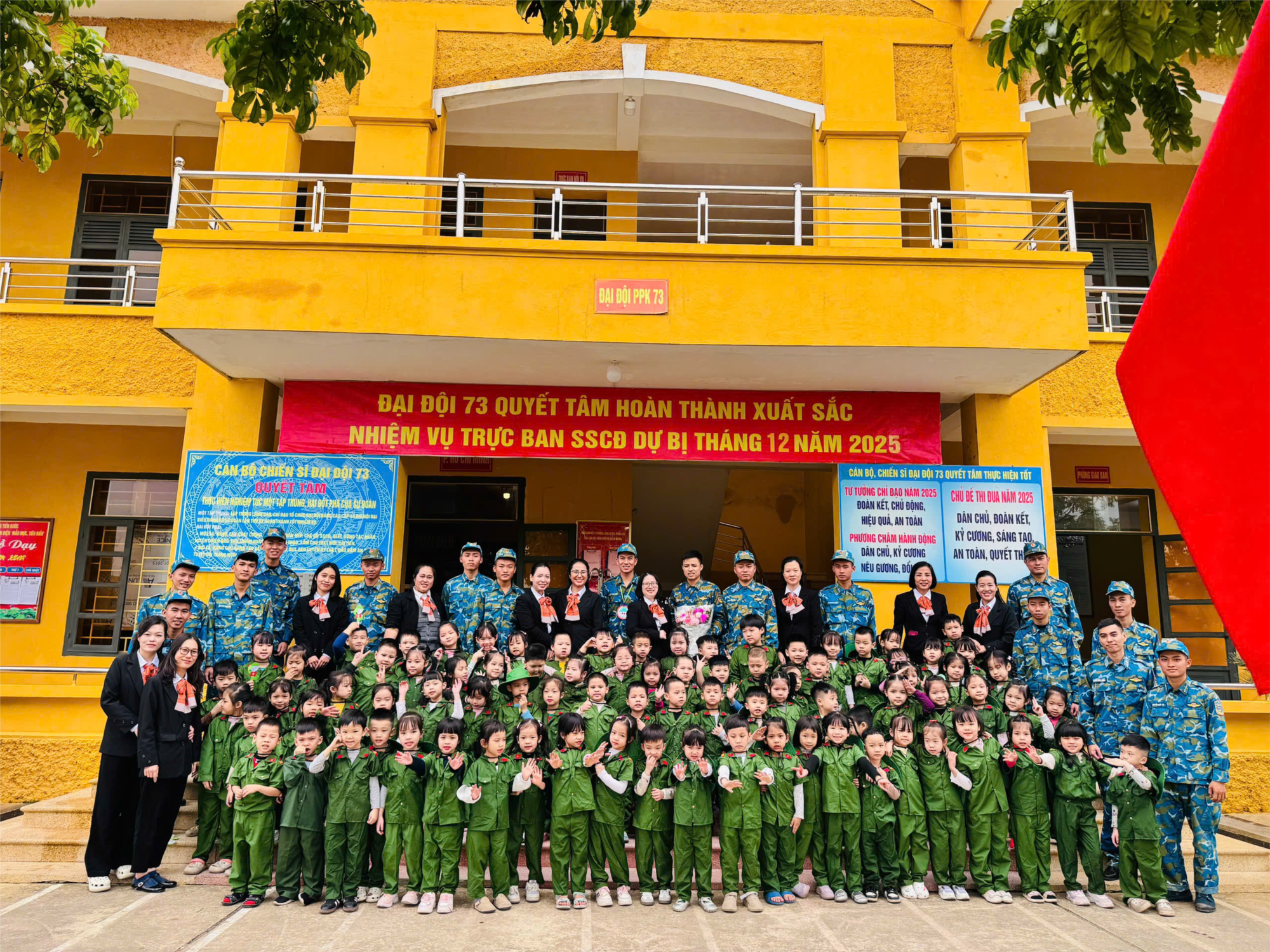 Tại đây, các con được tham quan nơi sinh hoạt, làm việc của các chú bộ đội; được lắng nghe những câu chuyện giản dị về công việc hằng ngày, được giao lưu và chụp ảnh cùng các chú. Sự thân thiện, gần gũi của các chú bộ đội đã để lại trong lòng các con những ấn tượng đẹp và cảm xúc khó quên.