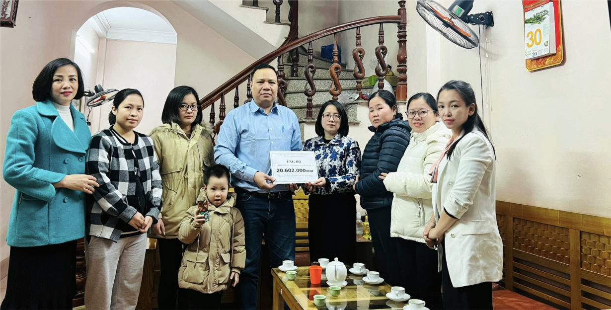 Với truyền thống đoàn kết, tương thân tương ái, với phong trào “Người người làm việc thiện, nhà nhà làm việc thiện, ngành ngành làm việc thiện” và “Thương người như thể thương thân”, để kịp thời đến và chia sẻ giúp đỡ gia đình anh Vũ Công Hiếu phụ huynh của bé Vũ Minh Khang địa chỉ tổ 2 Phường Phúc Đồng có nhà bị cháy thiệt hại về tài sản. Tập thể CBGVNV cùng toàn thể phụ huynh trong trường đã ủng hộ trao tặng cho gia đình anh Vũ Công Hiếu với số tiền là 20.602.000 (hai mươi triệu sáu trăm linh hai nghìn). Đồng chí Nguyễn bích Ngọc Hiệu trưởng nhà trường, Công đoàn trường cùng đồng chí Phạm Thị Minh Thu trưởng ban phụ huynh nhà trường động viên chia sẻ tới gia đình cháu Vũ Minh Khang, chúc nhà cháu nhanh có ngôi nhà mới khang trang.
