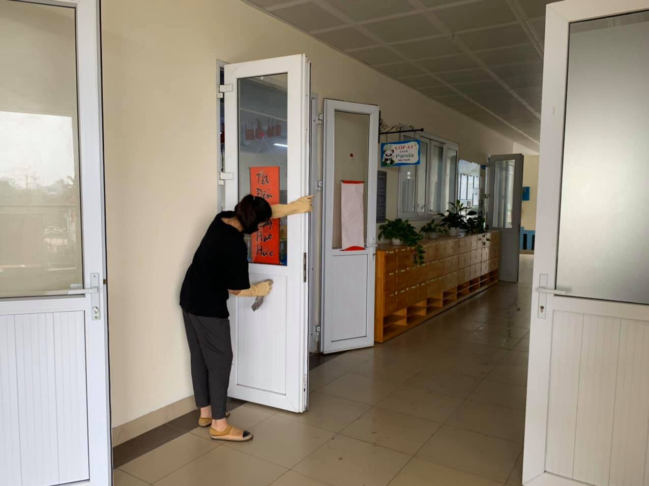 Sau cuộc họp, lớp MGL A3 đã tiến hành tổng vệ sinh toàn bộ trong và ngoài lớp học, đặc biệt là đồ dùng, đồ chơi, bàn ghế, tay nắm cửa, cửa sổ, giá đồ chơi... bằng dung dịch Cloramin B, thông thoáng phòng học sạch sẽ.