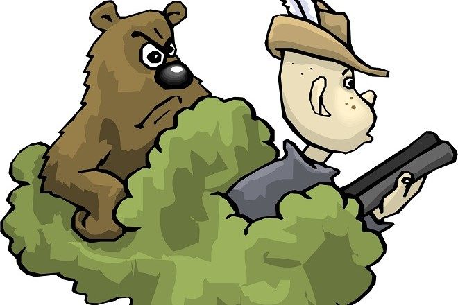 Gã xé một miếng, sắp đưa vào miệng thì bị anh thợ săn bắn một phát, thịt văng đi mất. Gã nói: