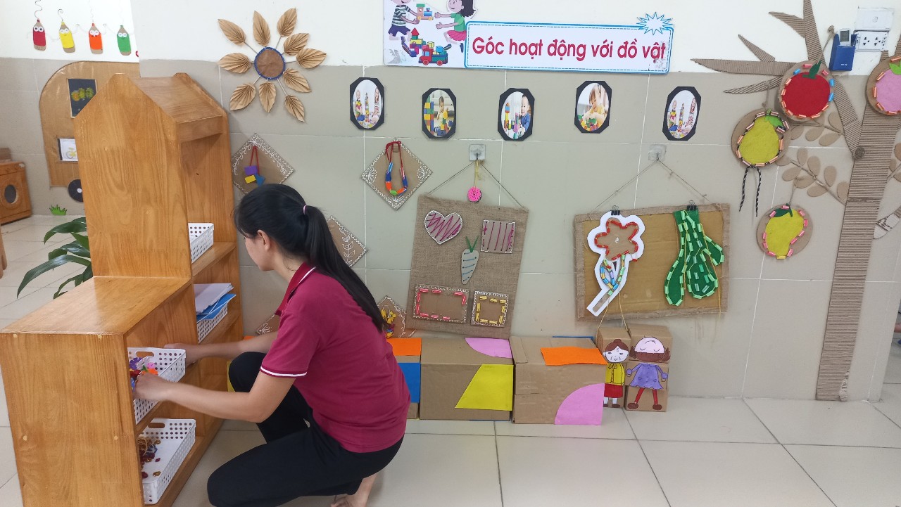 Để giúp trẻ có một môi trường học tập an toàn và sạch sẽ, mặc dù trong thơi gian hè, giáo viên lớp nhà trẻ D1 vẫn duy trì nề nếp dọn vệ sinh hàng ngày cũng như cuối tuần. Môi trường trong và ngoài lớp học được lau dọn thường xuyên giúp cho lớp đươc thoáng mát. Các giá góc đồ chơi sạch sẽ đảm bảo an toàn cho trẻ tránh các dịch bệnh mùa hè.