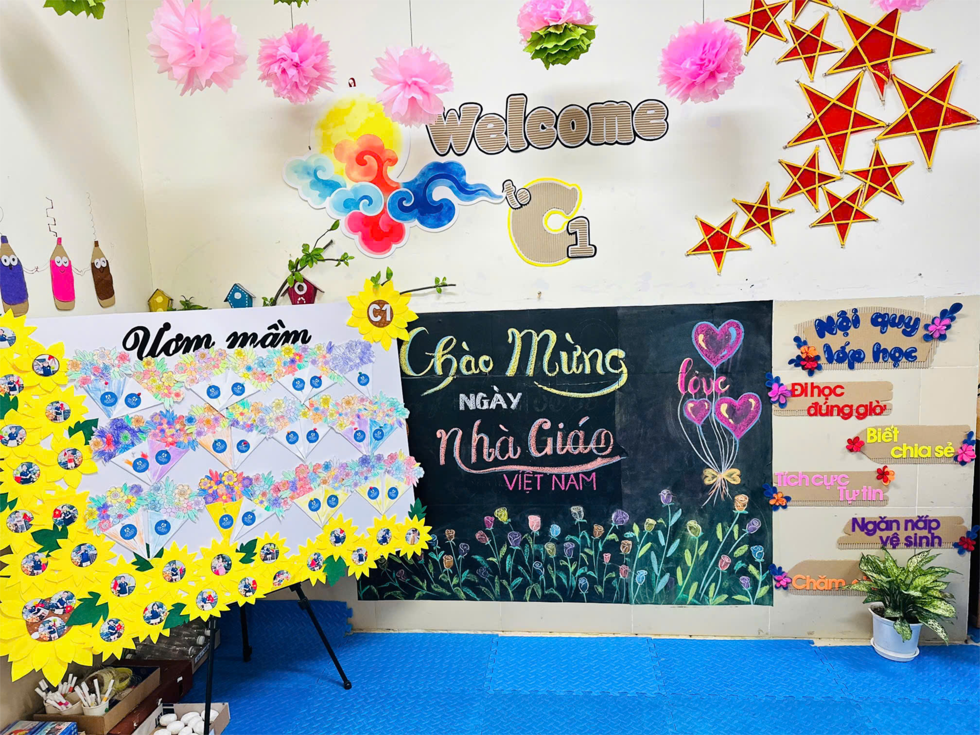 Vì một nhà trường; Sáng- Xanh- Sạch - Đẹp- Văn minh- Hạnh phúc.