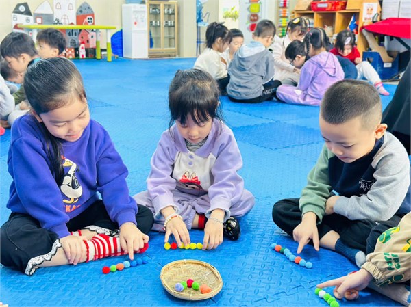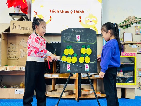 Tập ảnh : Ảnh đẹp tháng 2- Các bé MGL A3 trong giờ học tách- gộp 9 đối tượng tnahf 2 phần theo các cách khác nhau