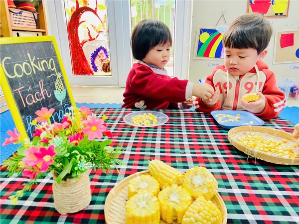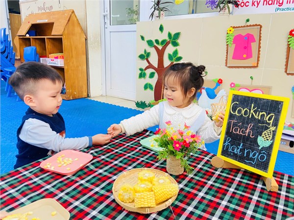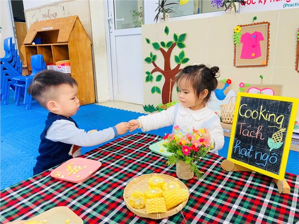 Tập ảnh : Ảnh đẹp tháng 2: Khéo tay hay làm – Bé lớp D2 vui học qua trò chơi tách hạt ngô