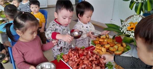 Tập ảnh : Các bé lớp Nhà trẻ D2 tham gia tiệc buffet chào mừng ngày 8/3