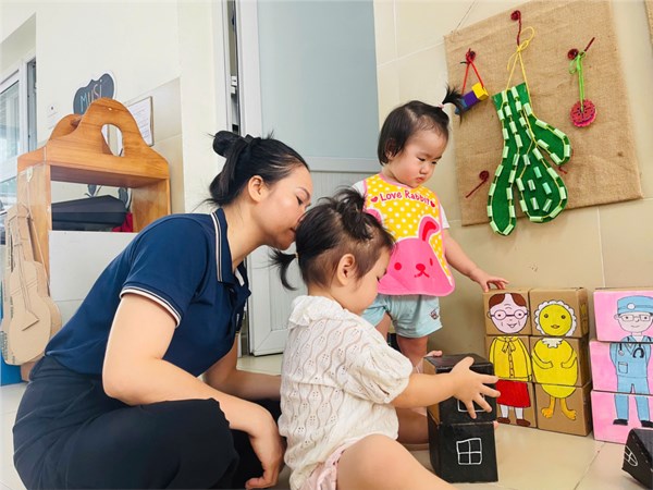 Tập ảnh : Các bé Nhà trẻ D1 hào hứng tham gia hoạt động góc tại lớp.