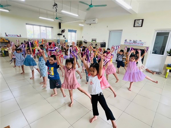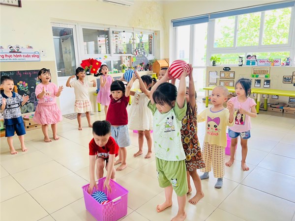 Tập ảnh : Giờ học thể dục: VĐCB Chuyền bóng qua đầu lớp MGN B2