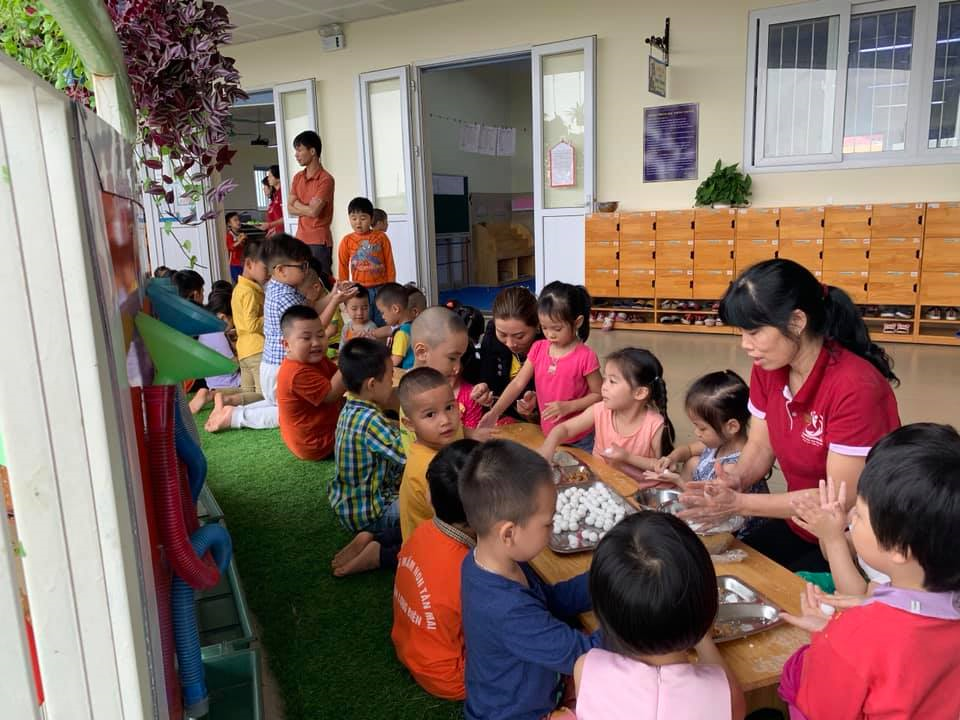Ngày 05 tháng 04 năm 2019, tức ngày 01 tháng 03 âm lịch, cô và các bé lớp MGB C2 rất nô nức và phấn khởi khi được tam gia trải nghiệm " Ngày hội bánh trôi - bánh chay đón Tết Hàn thực".Ngày Tết Hàn thực không chỉ là ngày Tết của những món ăn lạnh mà đó còn là dịp mỗi con dân đất Việt tưởng nhớ đến cội nguồn dân tộc với ngày Tết cổ truyền mồng 3 tháng 3. Ngày Tết mồng 3 tháng 3 hằng năm được nhớ đến với sự tích bánh trôi bánh chay dưới sự tượng trưng trăm trứng nở ra trăm con của mẹ Âu cơ và cha Lạc Long Quân. Để hưởng ứng tinh thần dân tộc ấy, ngày 05 tháng 04 năm 2019, tức ngày 01 tháng 03 âm lịch, trường mầm non Tân Mai đã tổ chức cho tất cả các bé được trải nghiệm thực tế " Ngày hội bánh trôi - bánh chay đón Tết Hàn thực". Ngay từ sáng, công đoạn tổ chức cho các con đã dần hoàn thiện, bột gạo nếp đã được say và lọc sẵn, đường viên đã được các cô chuẩn bị sẵn sàng. Trước khi bước vào chương trình, tại mỗi lớp, các con đã được các cô cung cấp thêm thông tin về ngày Tết cổ truyền: tên gọi, ý nghĩa, nguyên liệu để tạo nên món ăn đặc trưng này.