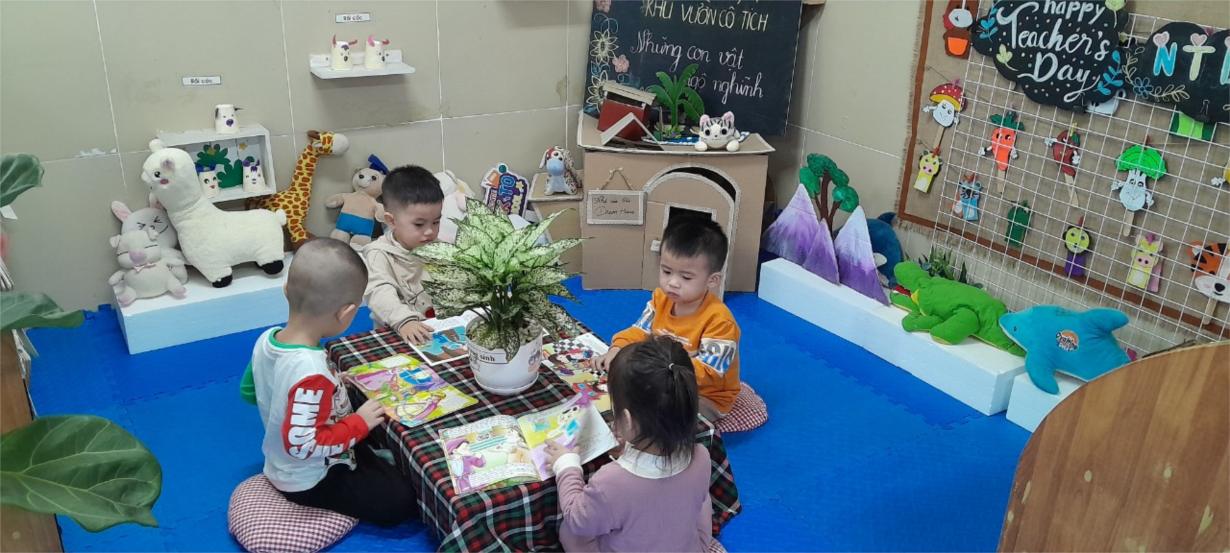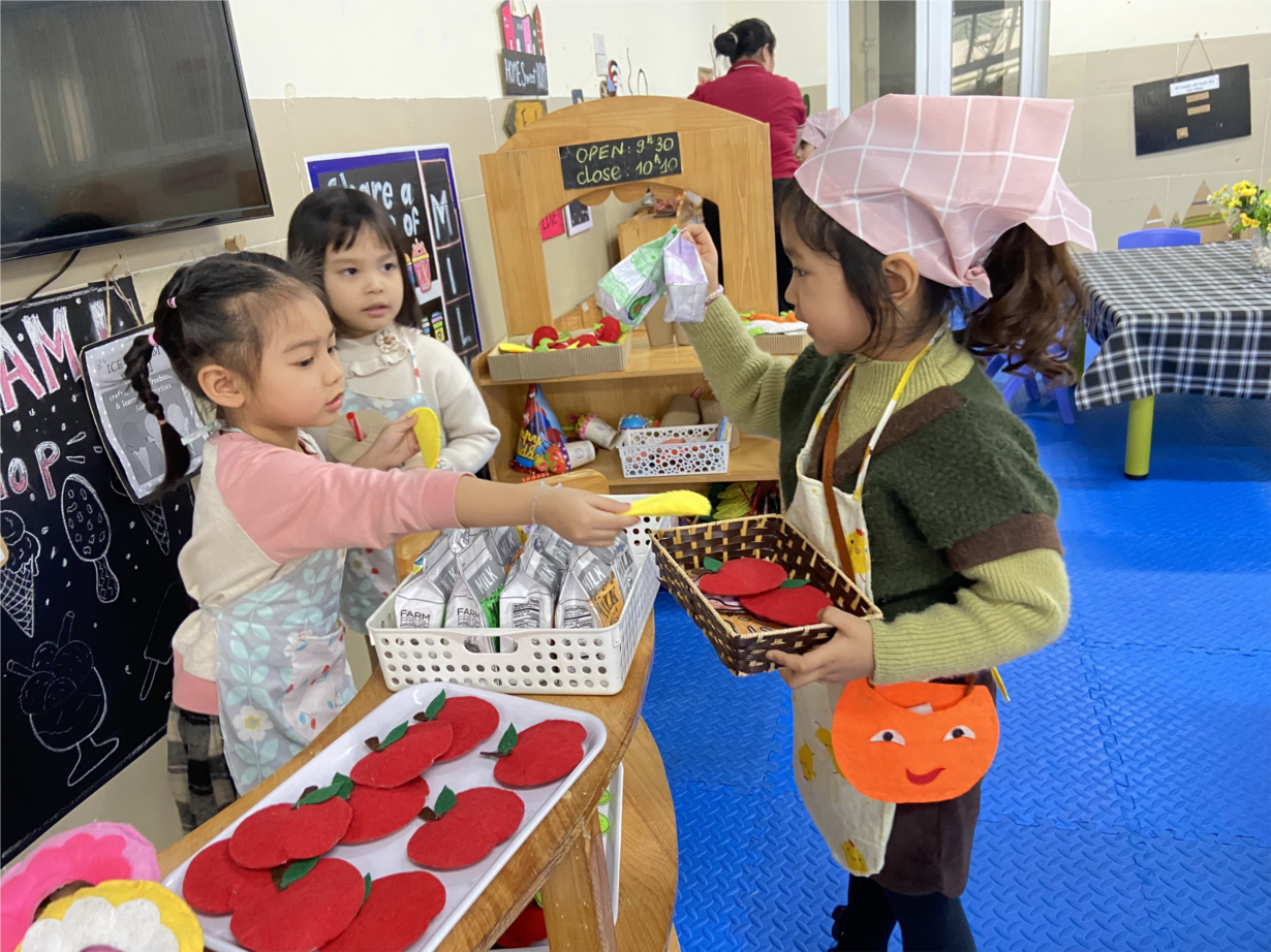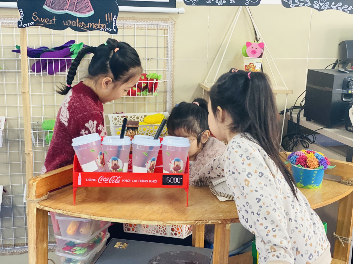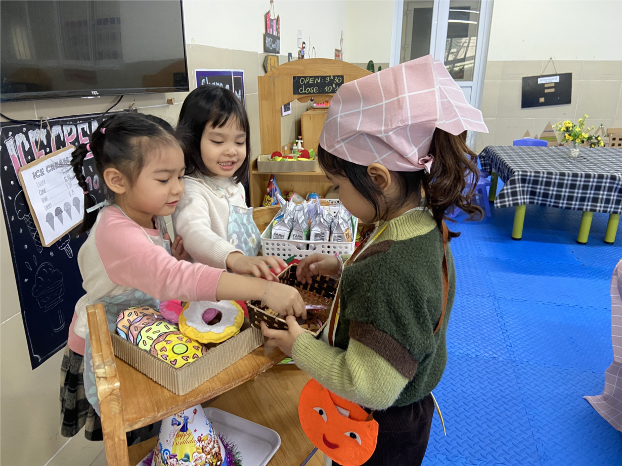 Các bé Nhà trẻ D1 hào hứng tham gia hoạt động góc tại lớp.