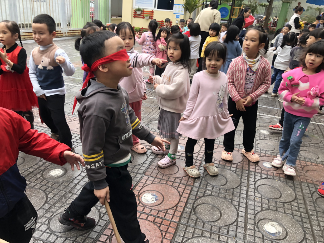 Các bạn nhỏ lớp B2 hứng thú tham gia hoạt động ngoài trời