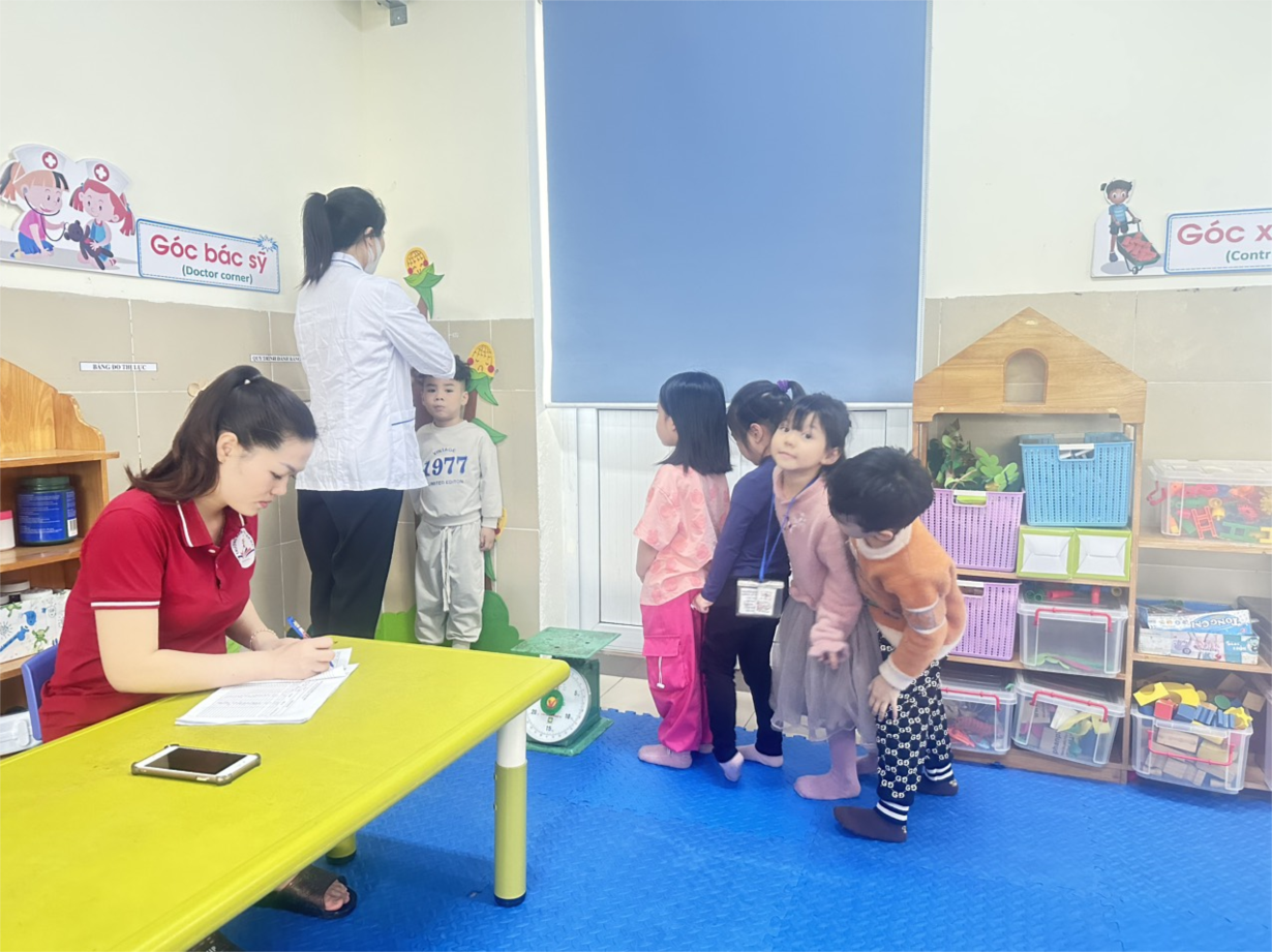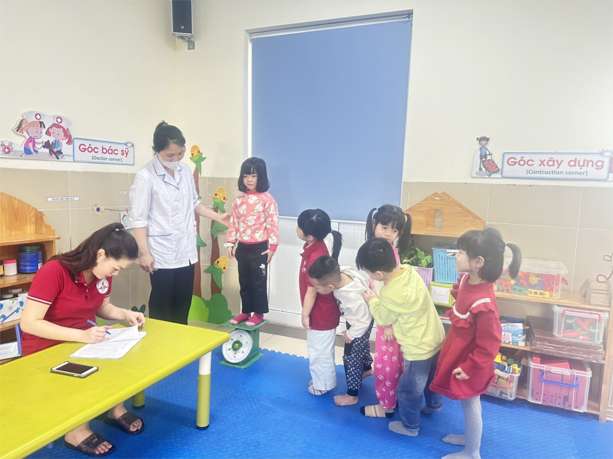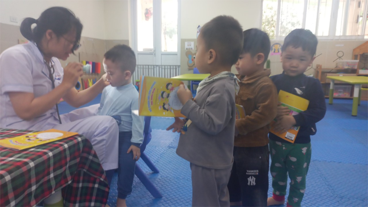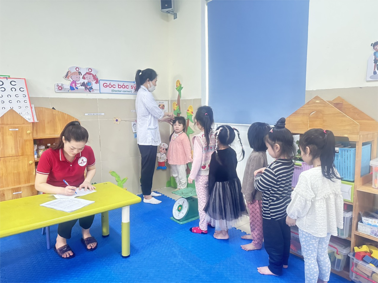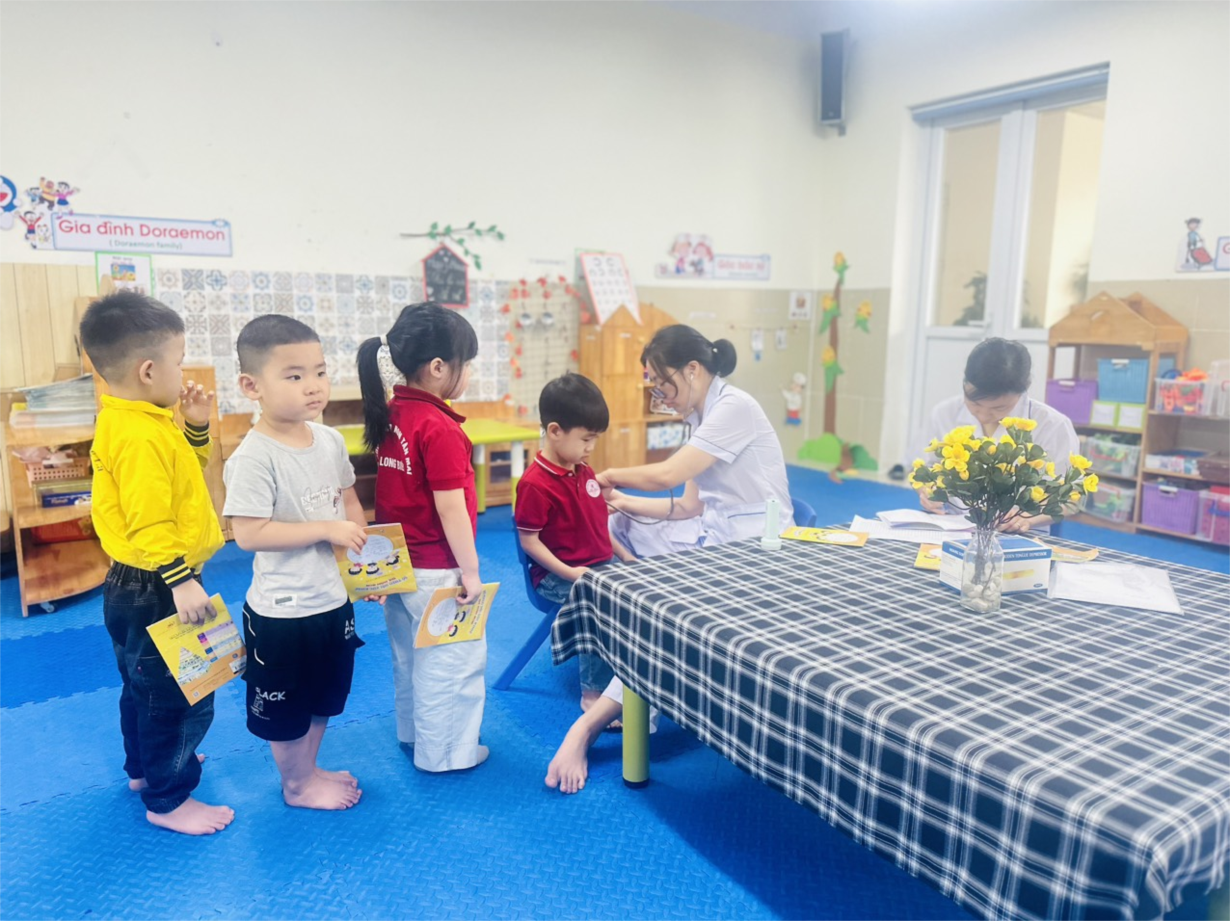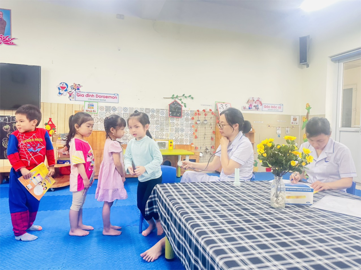 Các bé lớp B3 tham gia khám sức khoẻ định kì lần 2 tại trường mầm non Tân Mai
