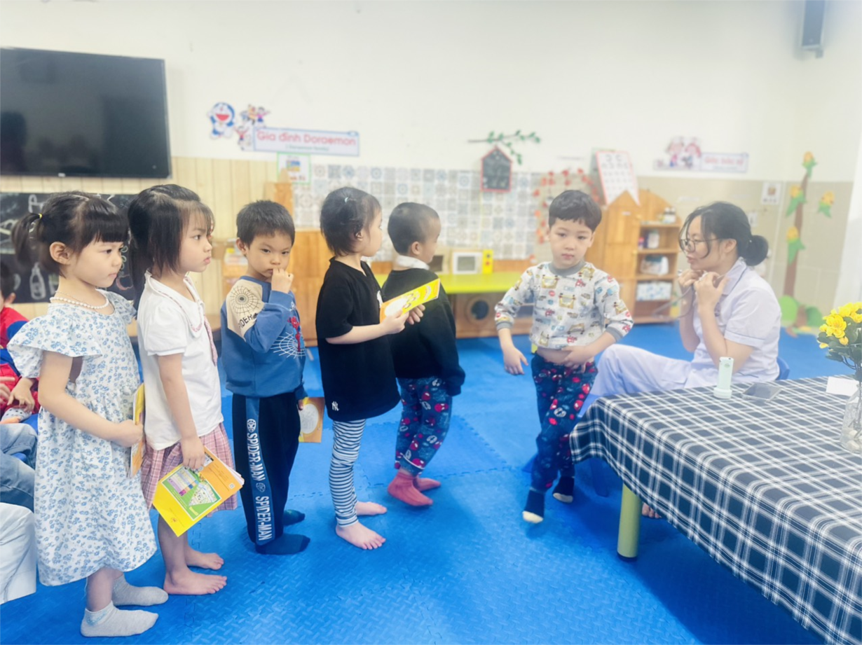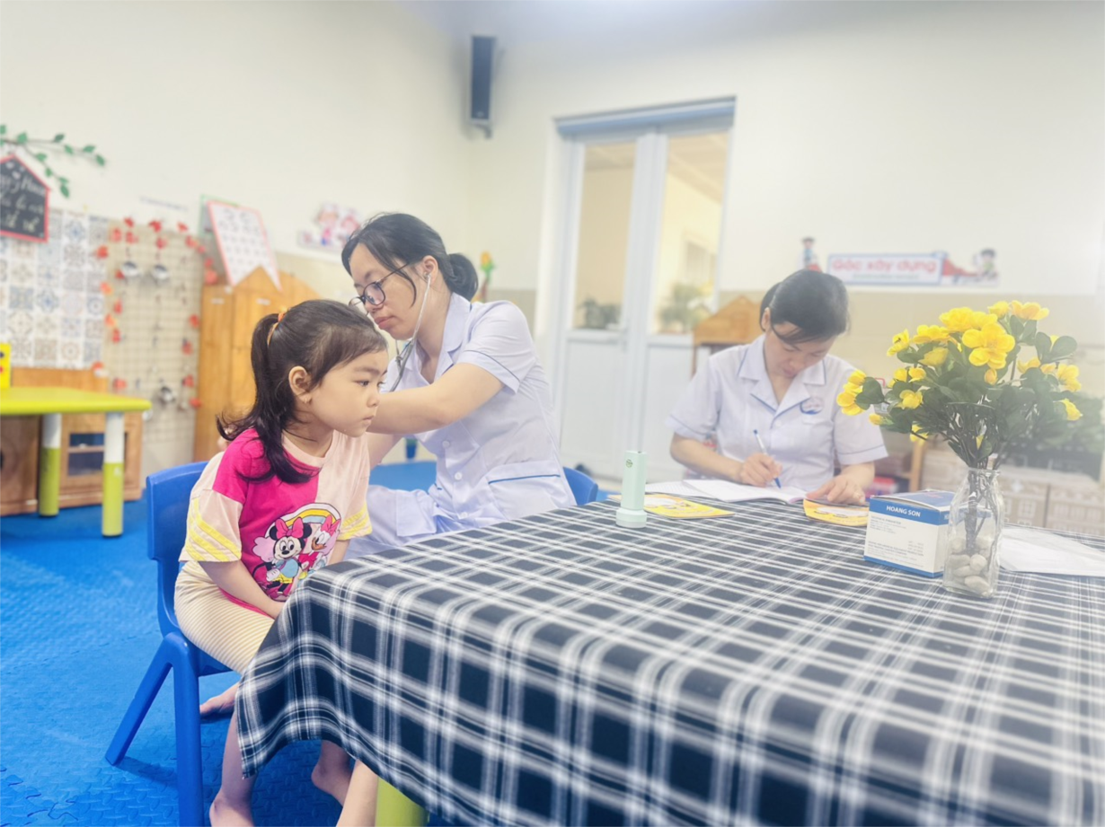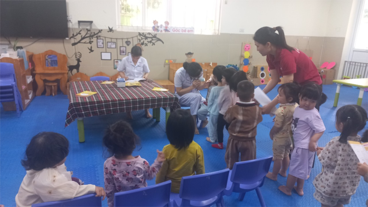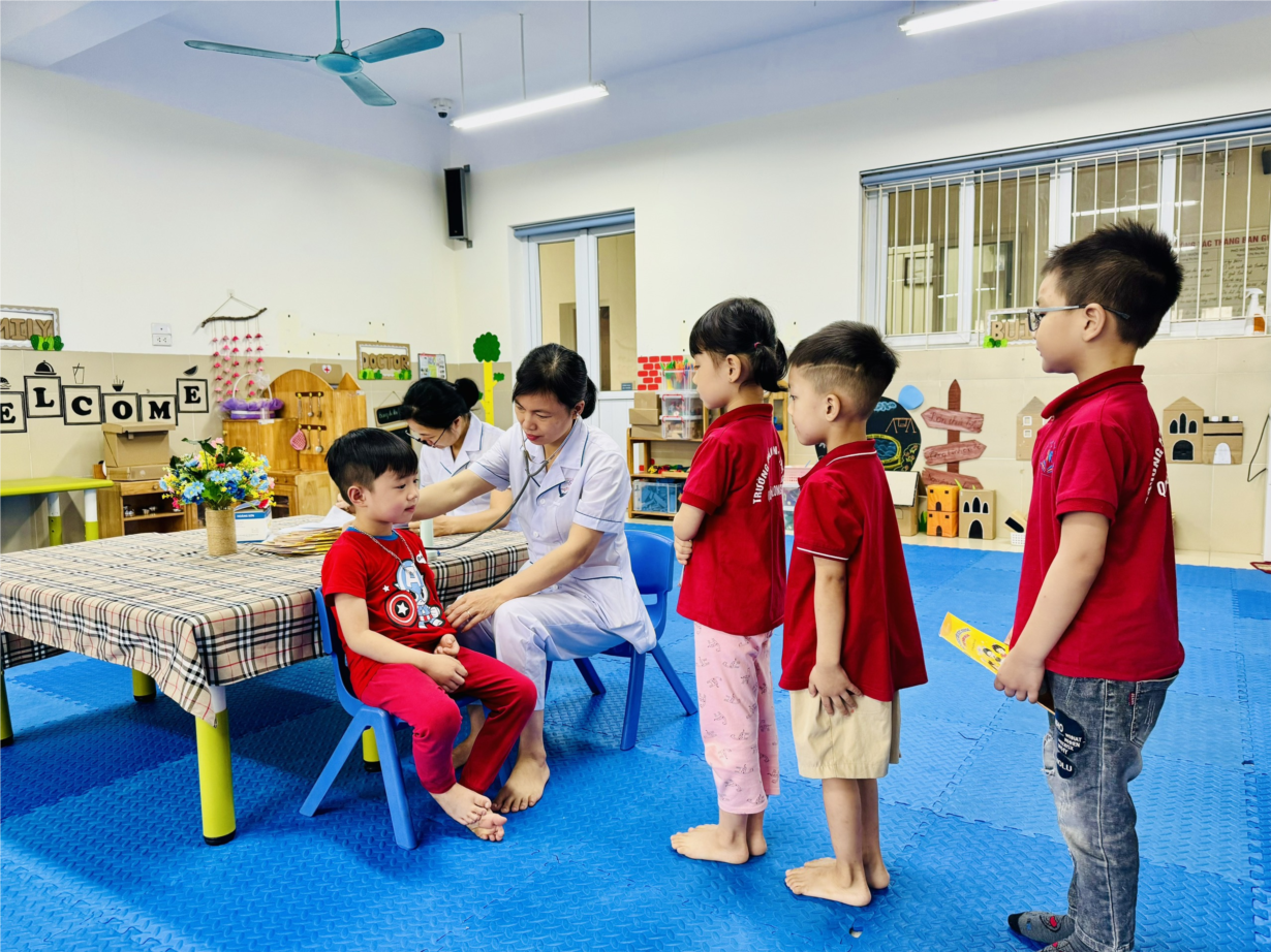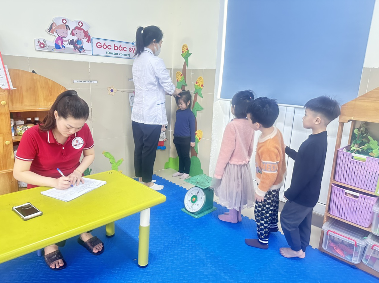 Các bé lớp B3 tham gia khám sức khoẻ định kì lần 2 tại trường mầm non Tân Mai