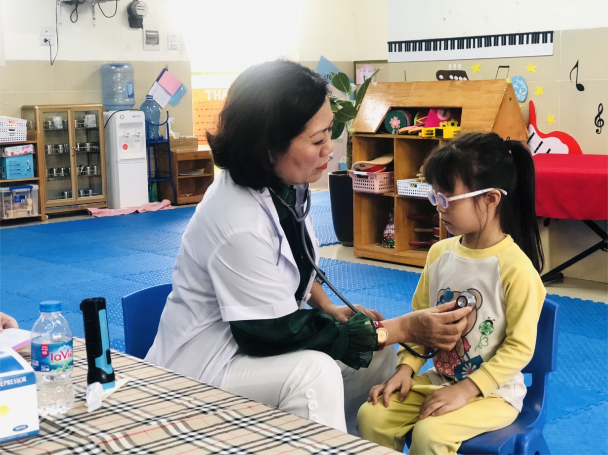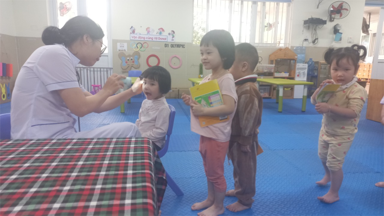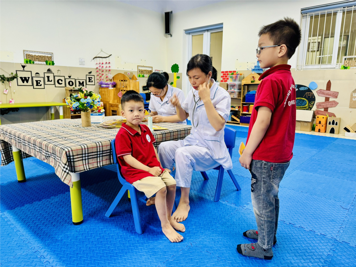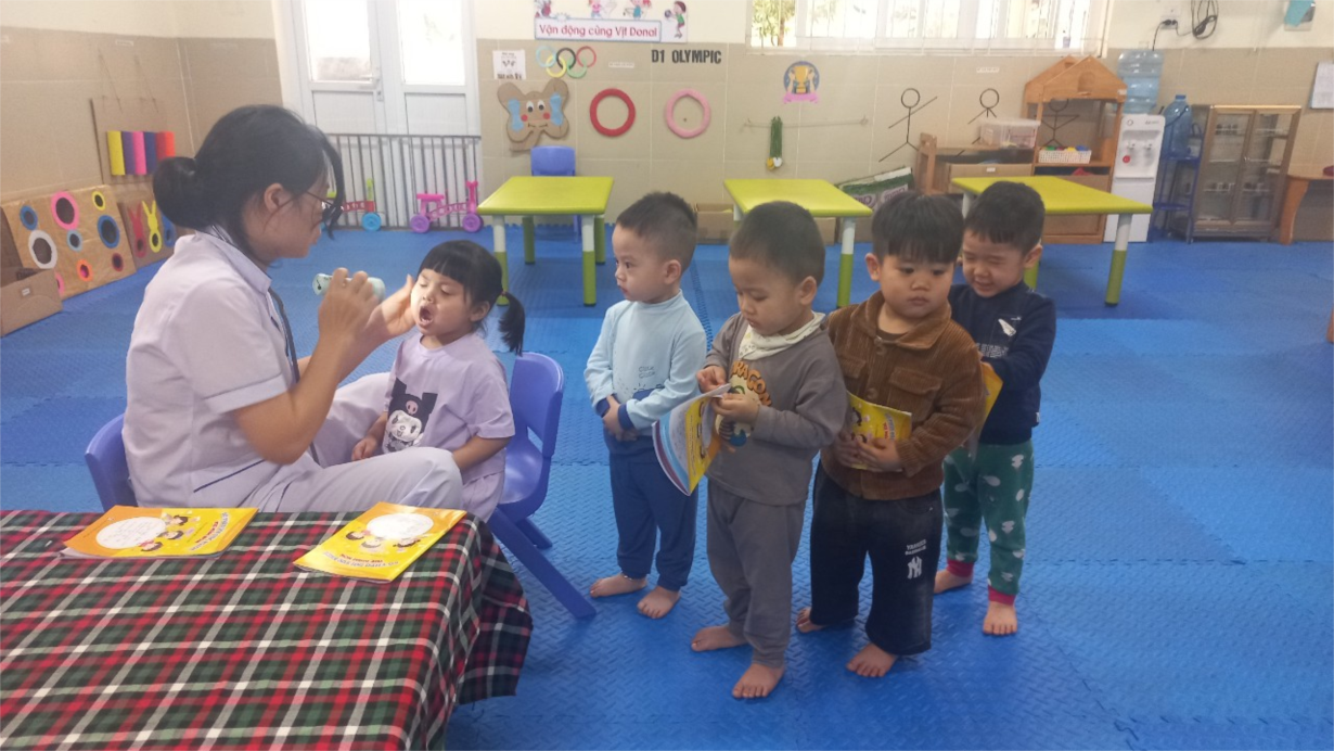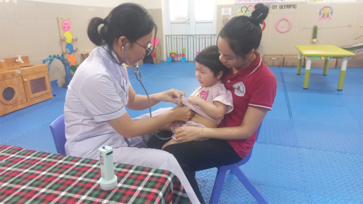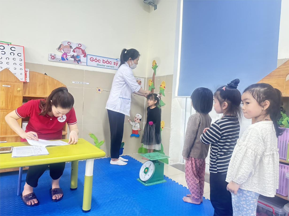 Các bé lớp B3 tham gia khám sức khoẻ định kì lần 2 tại trường mầm non Tân Mai