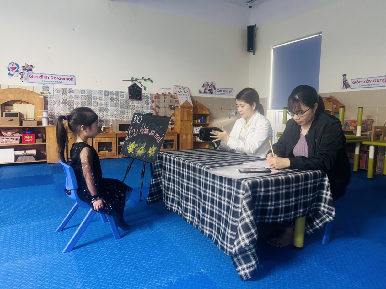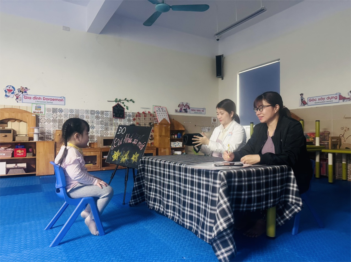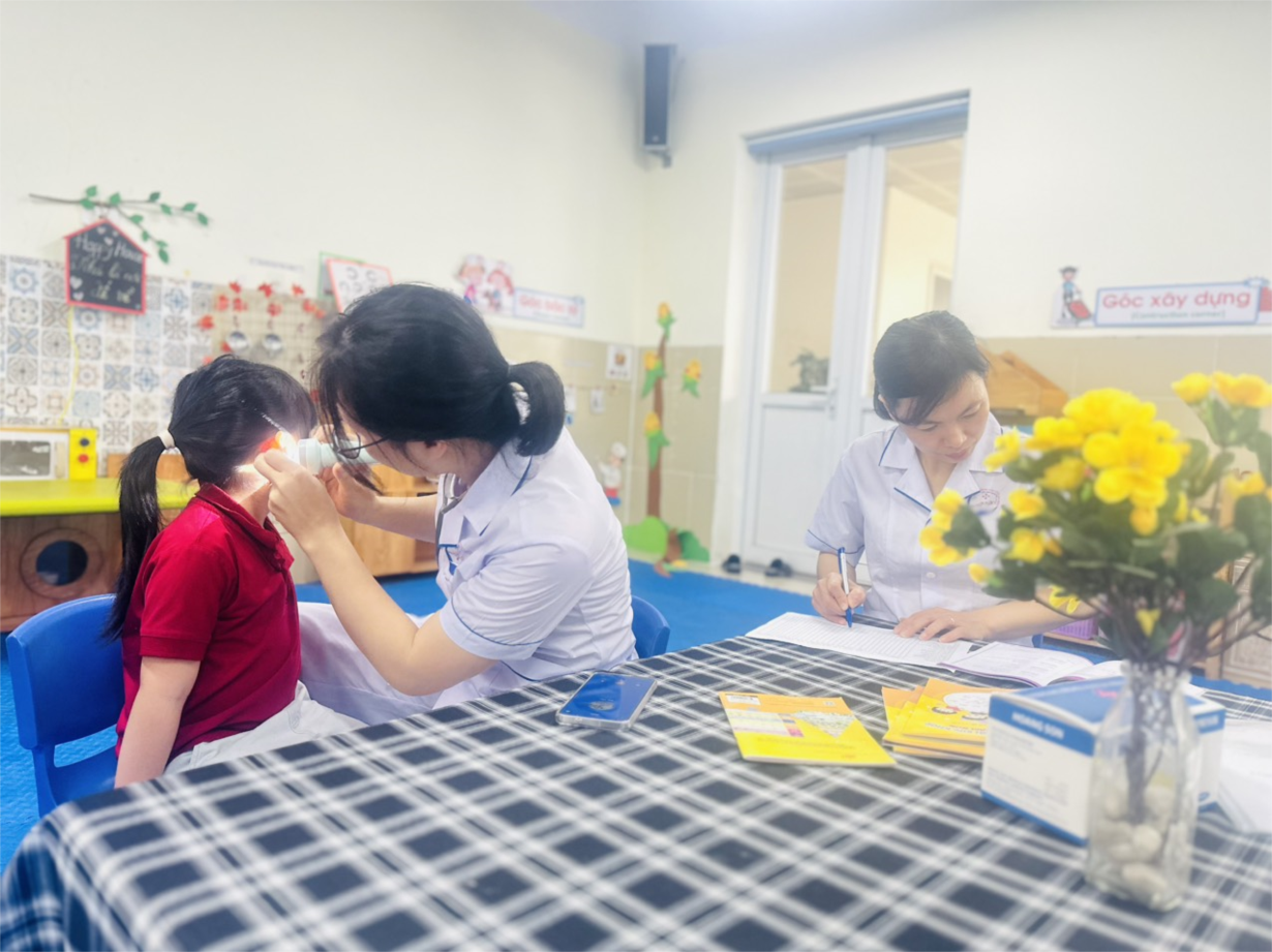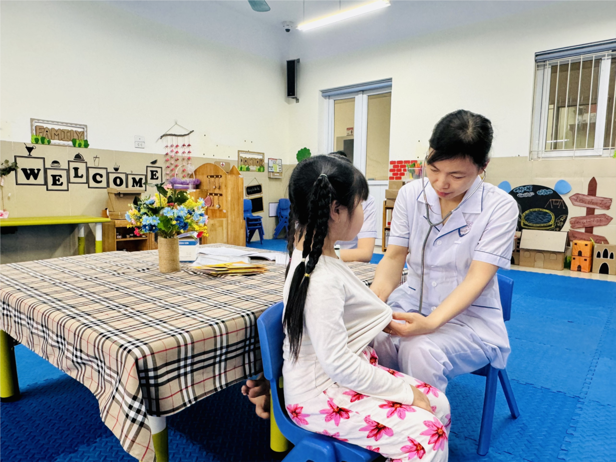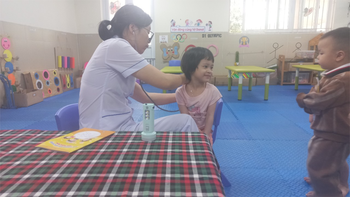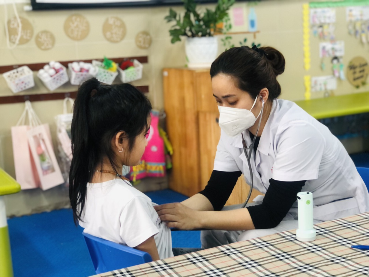 Các bé lớp B3 tham gia khám sức khoẻ định kì lần 2 tại trường mầm non Tân Mai