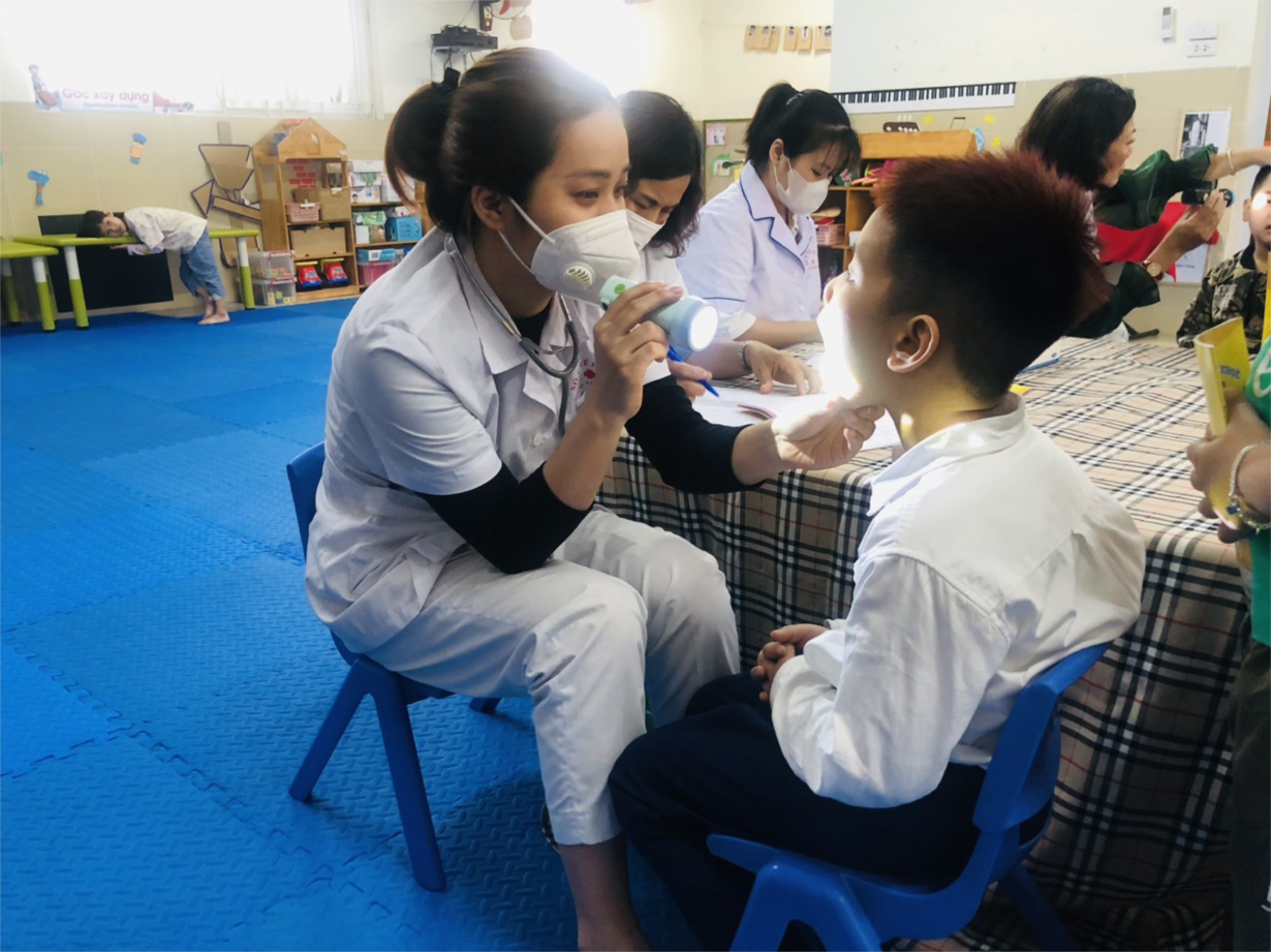 MGL A2 được các cô bác y tế phường Phúc Đồng khám sức khỏe.