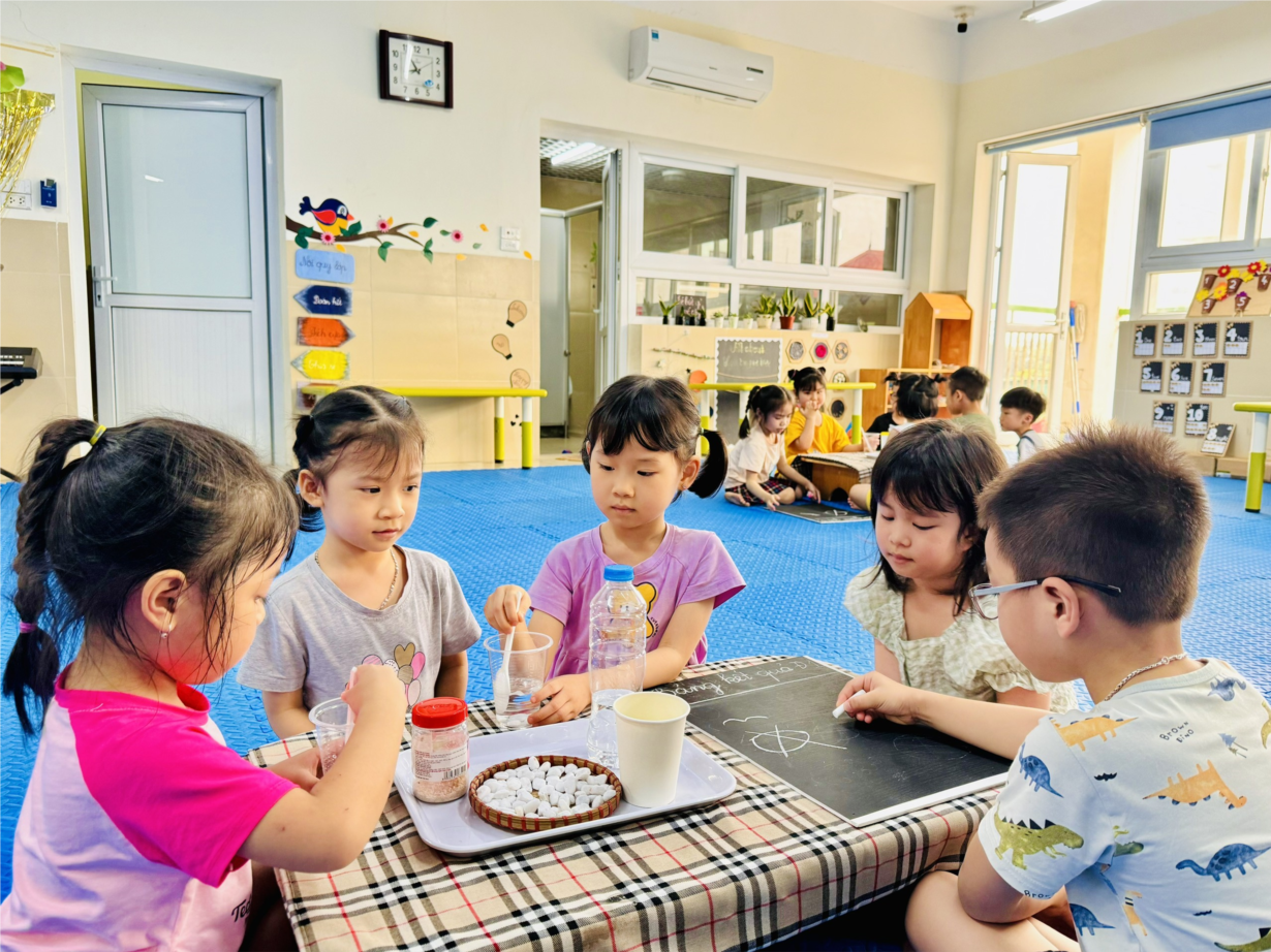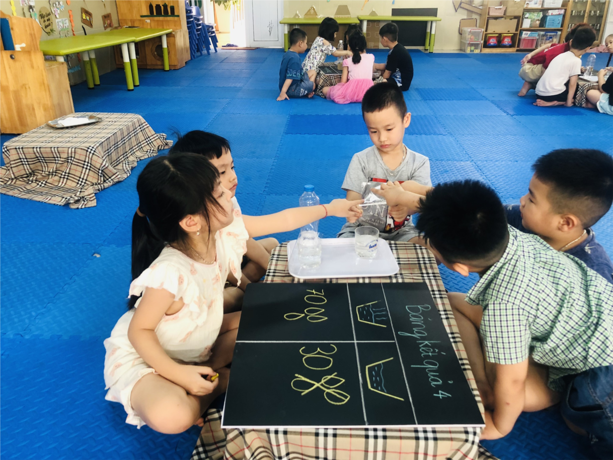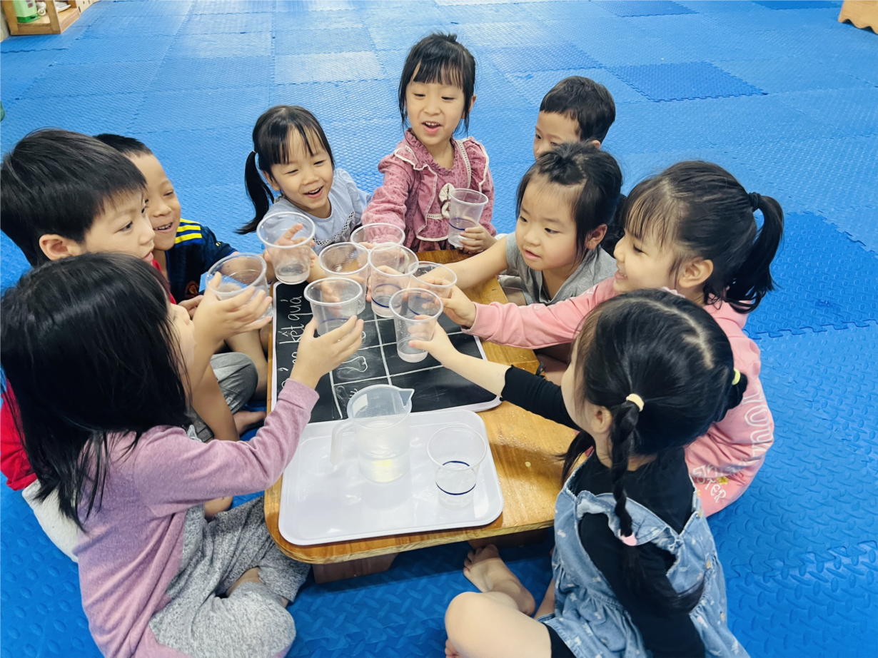 Hoạt động khám phá "Sự bốc hơi của nước” của các bạn nhỏ lớp MGL A2