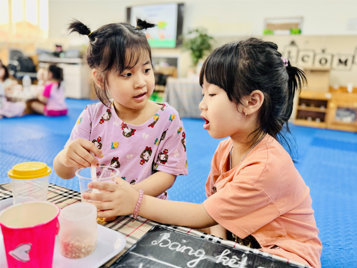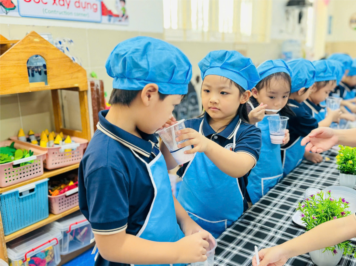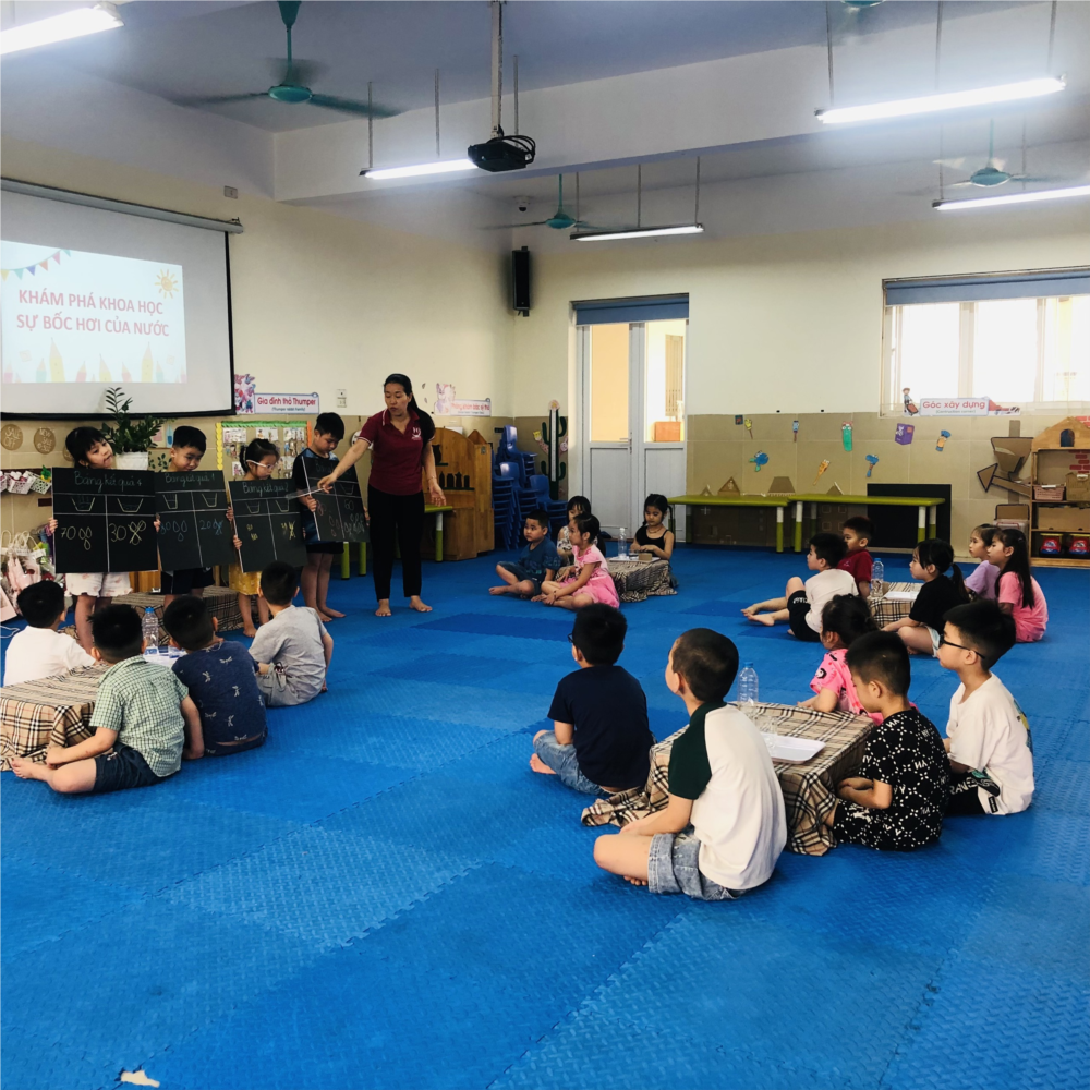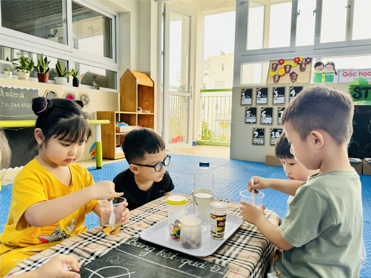 Hoạt động khám phá "Sự bốc hơi của nước” của các bạn nhỏ lớp MGL A2