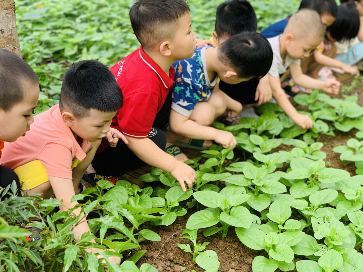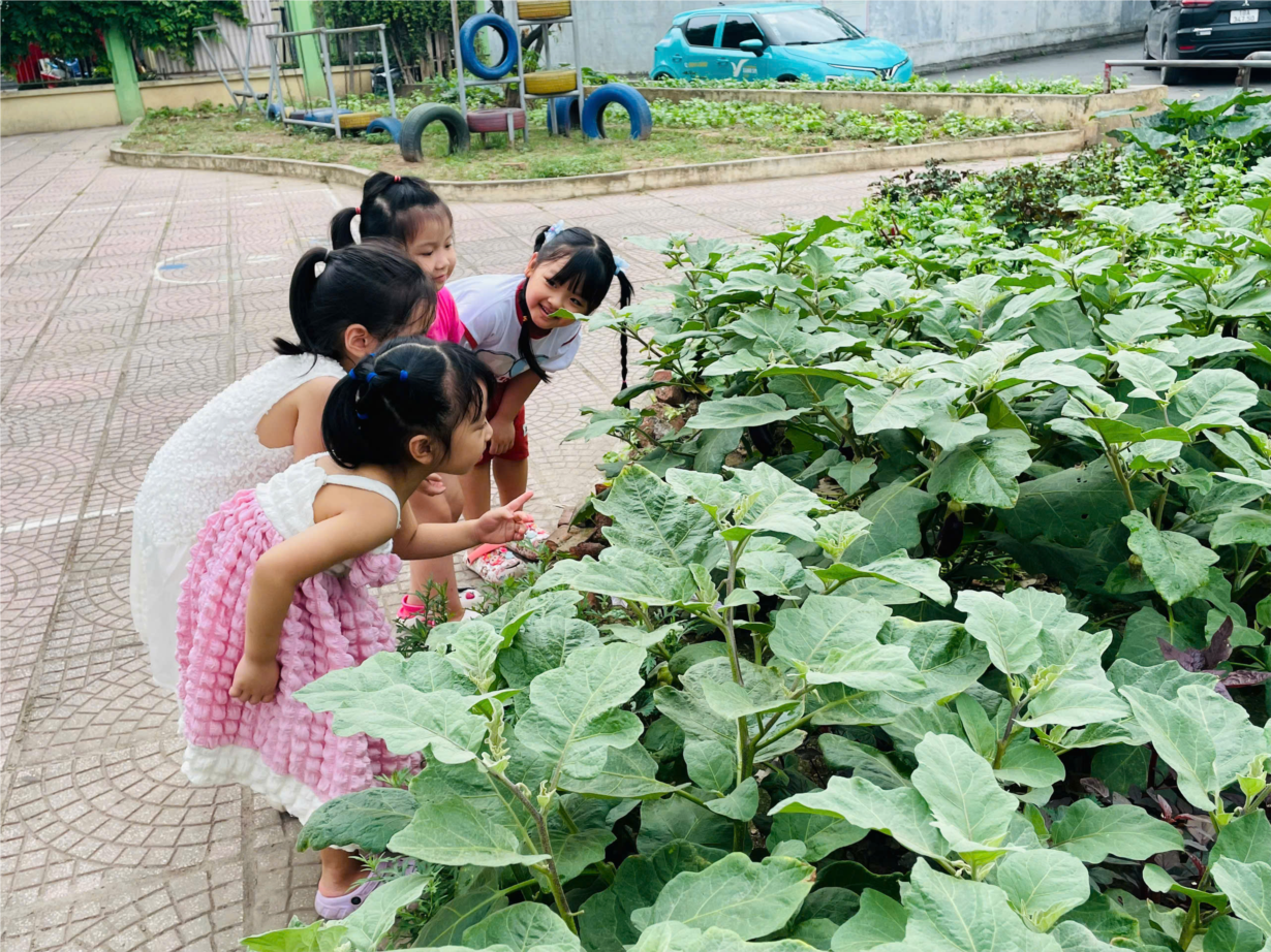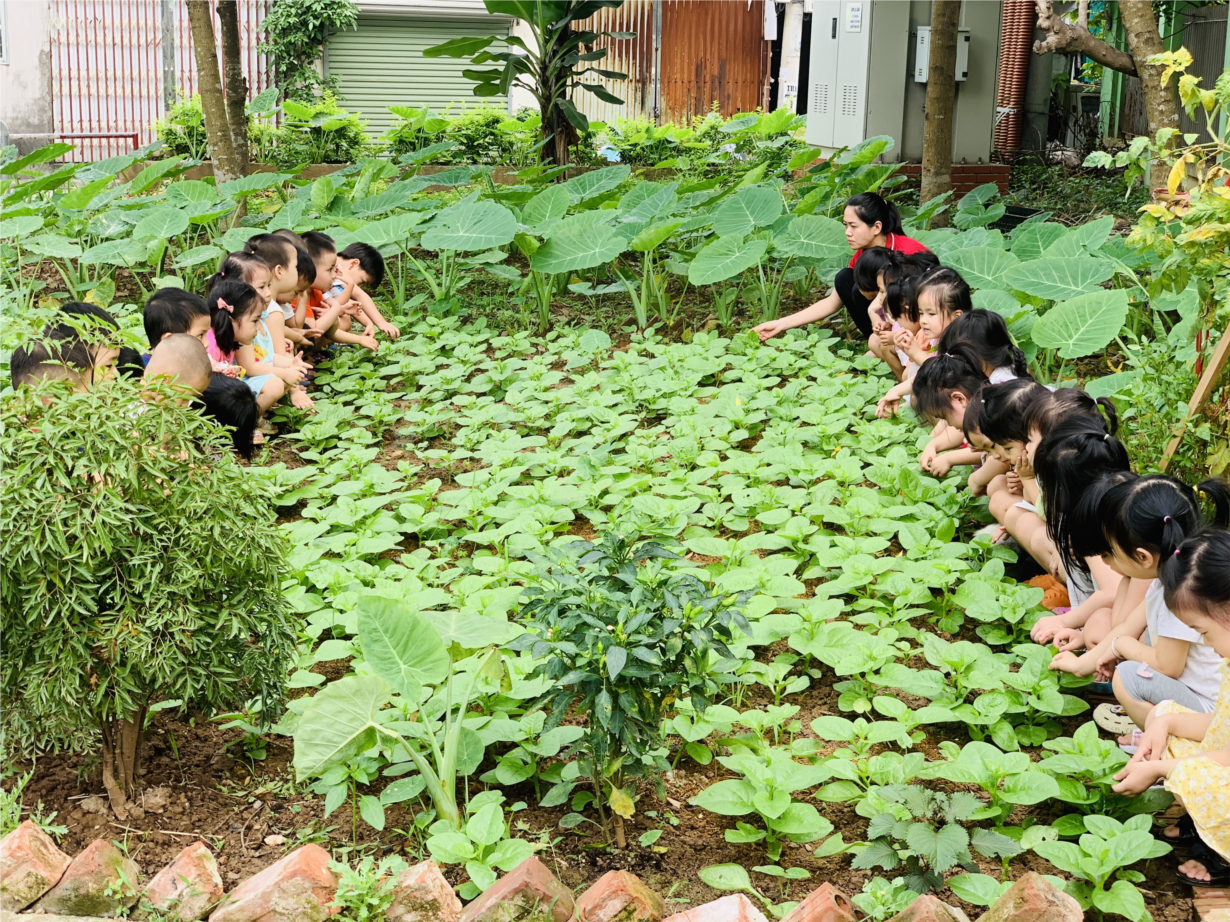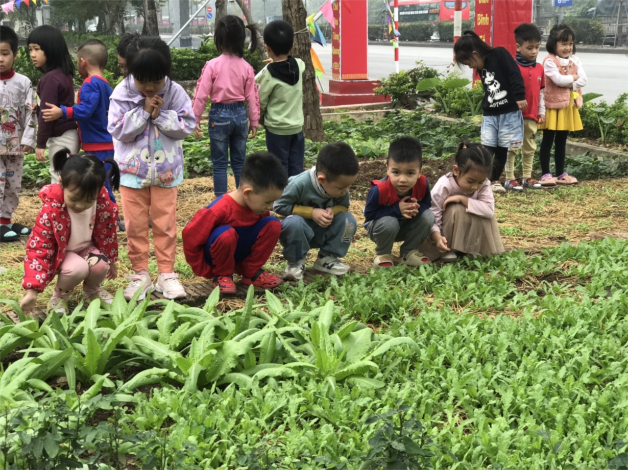 Cùng các bé D1 tham quan vườn rau của các lớp !
