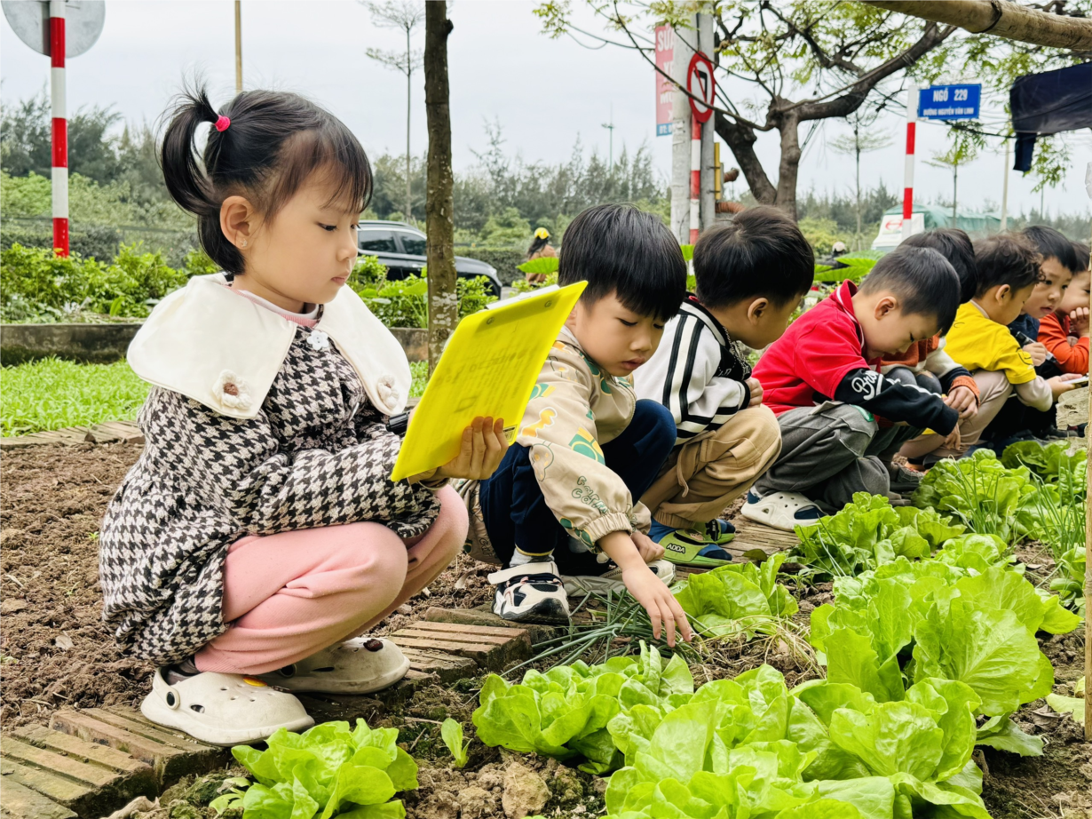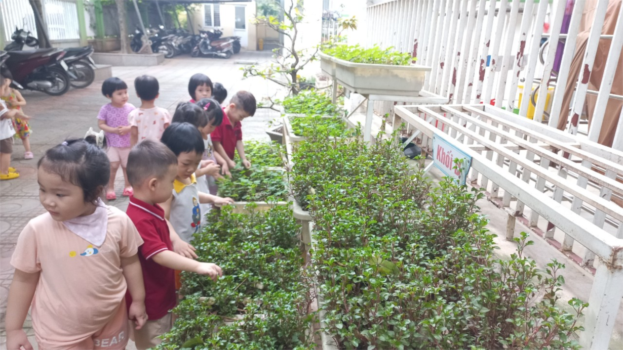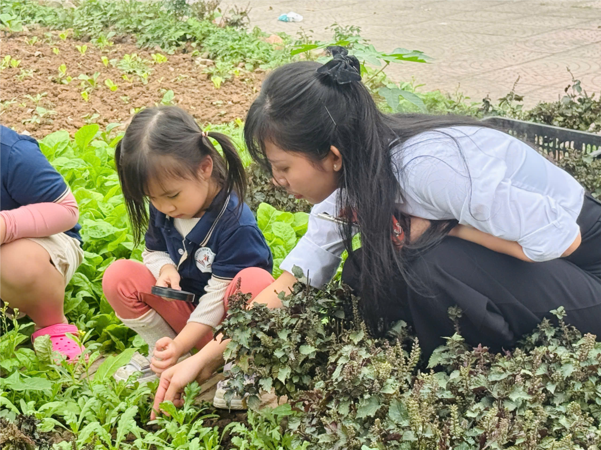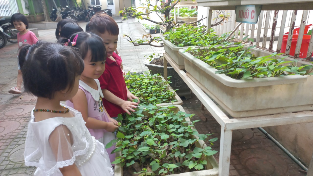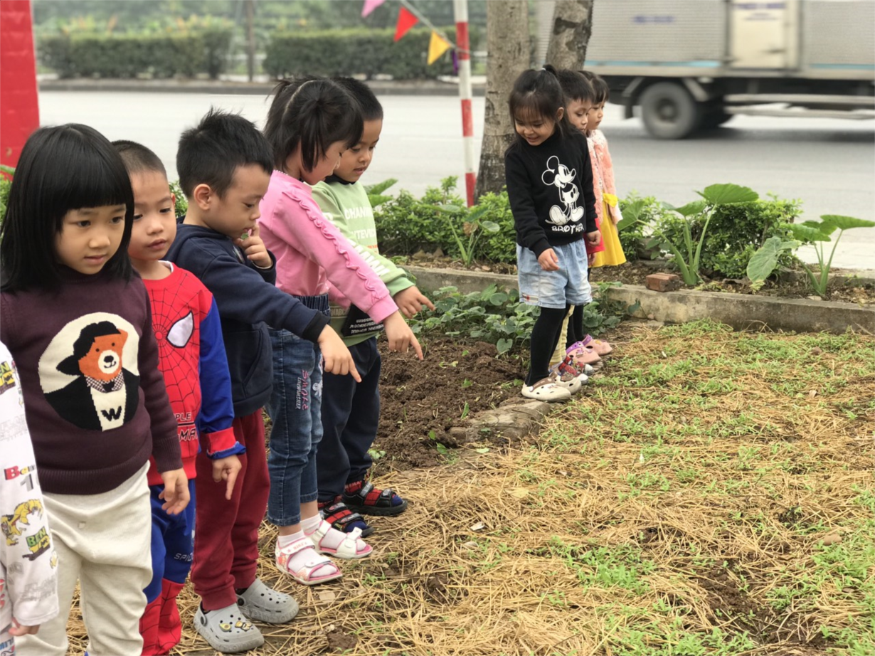 Cùng các bé D1 tham quan vườn rau của các lớp !