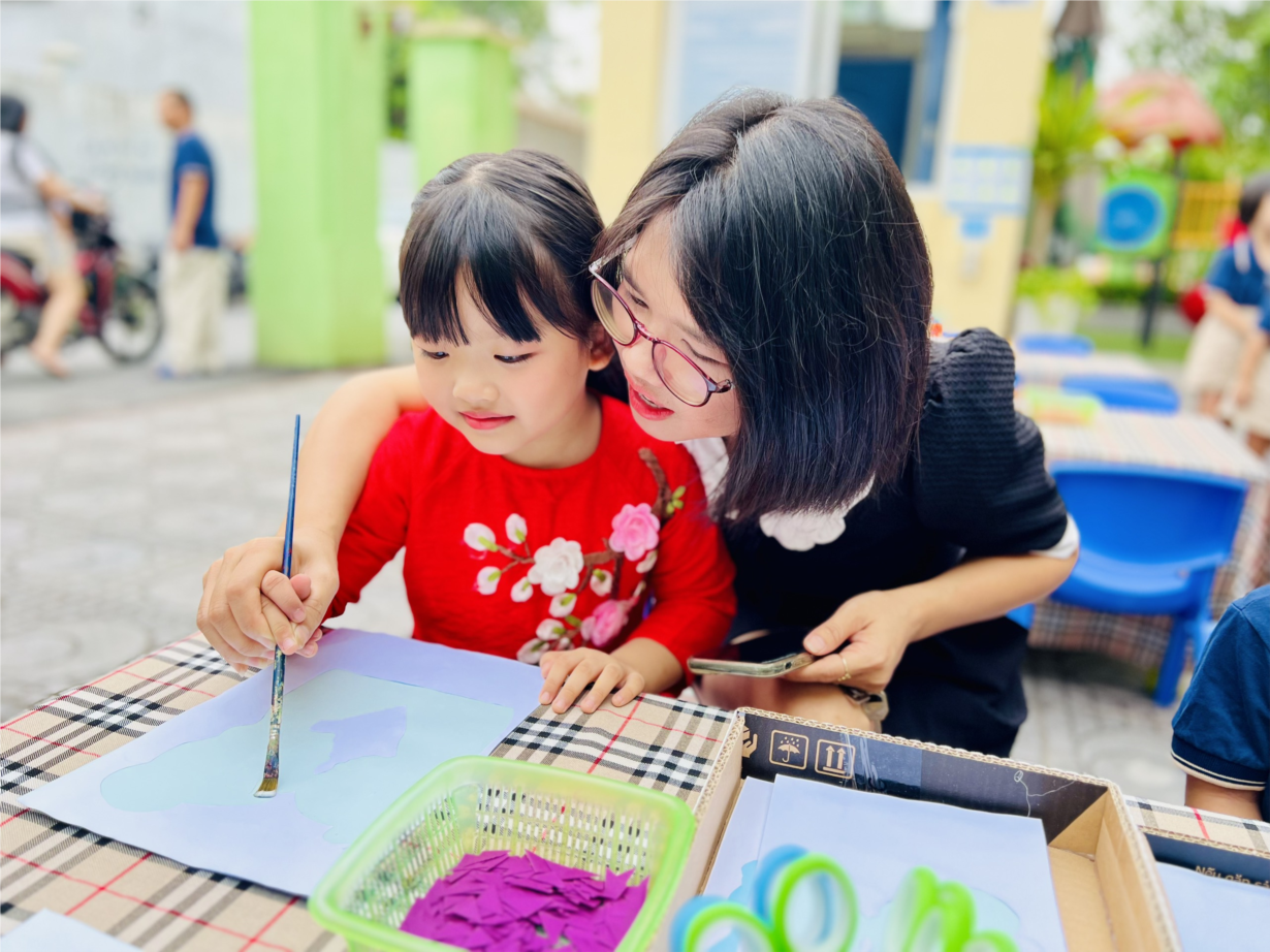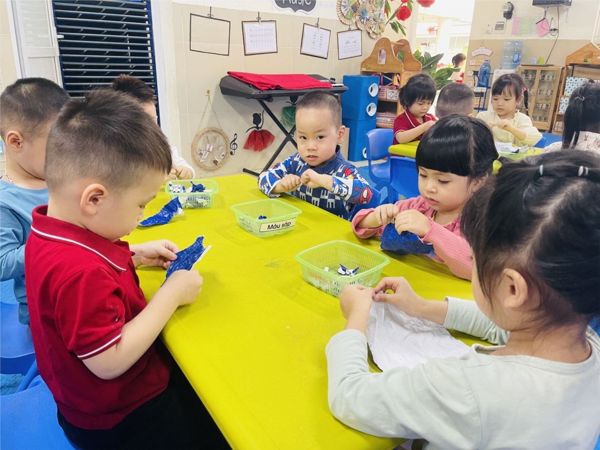 Ảnh đẹp tháng 2 - Giờ học "Tạo hình pháo hoa" của các bé lớp MGB C1